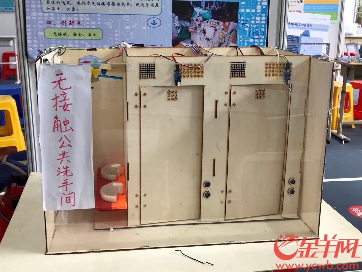 3名来自广州市番禺执信中学的初中生,设计了“无接触公共洗手间”,获得了本次比赛的一等奖和执信中学元培科技创新奖。