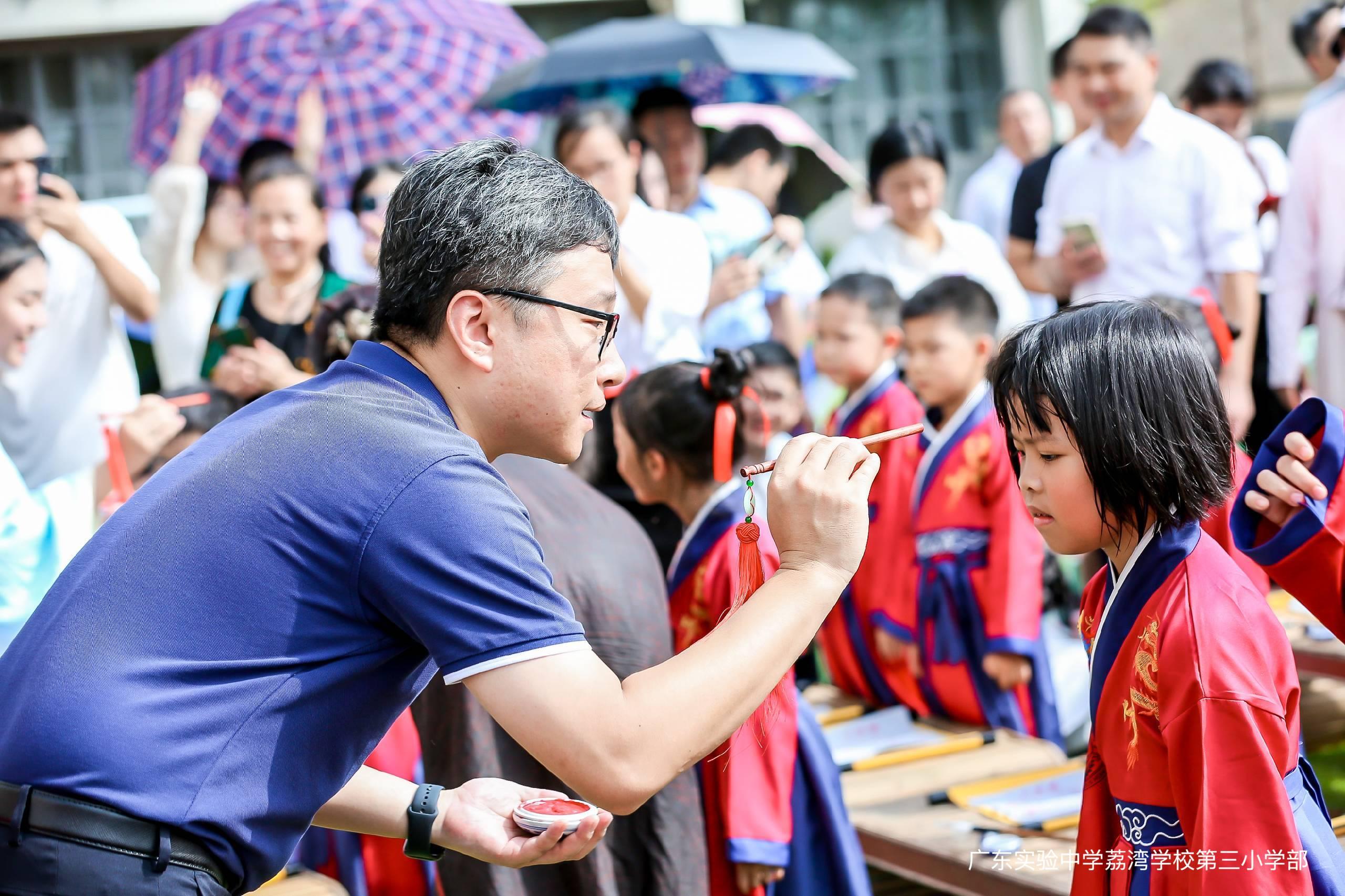 省实荔湾三小校长陈茜寄语2023级新生,在校园里建立最真挚的同学情,开启知识海洋的航程,迈出成才的起点,奔向成功的彼岸。她希望学子们铭记“爱国,团结,求实,创新”的校训,珍惜读书机会、勤奋学习,追求卓越,立下为中华之富强而读书的大志。