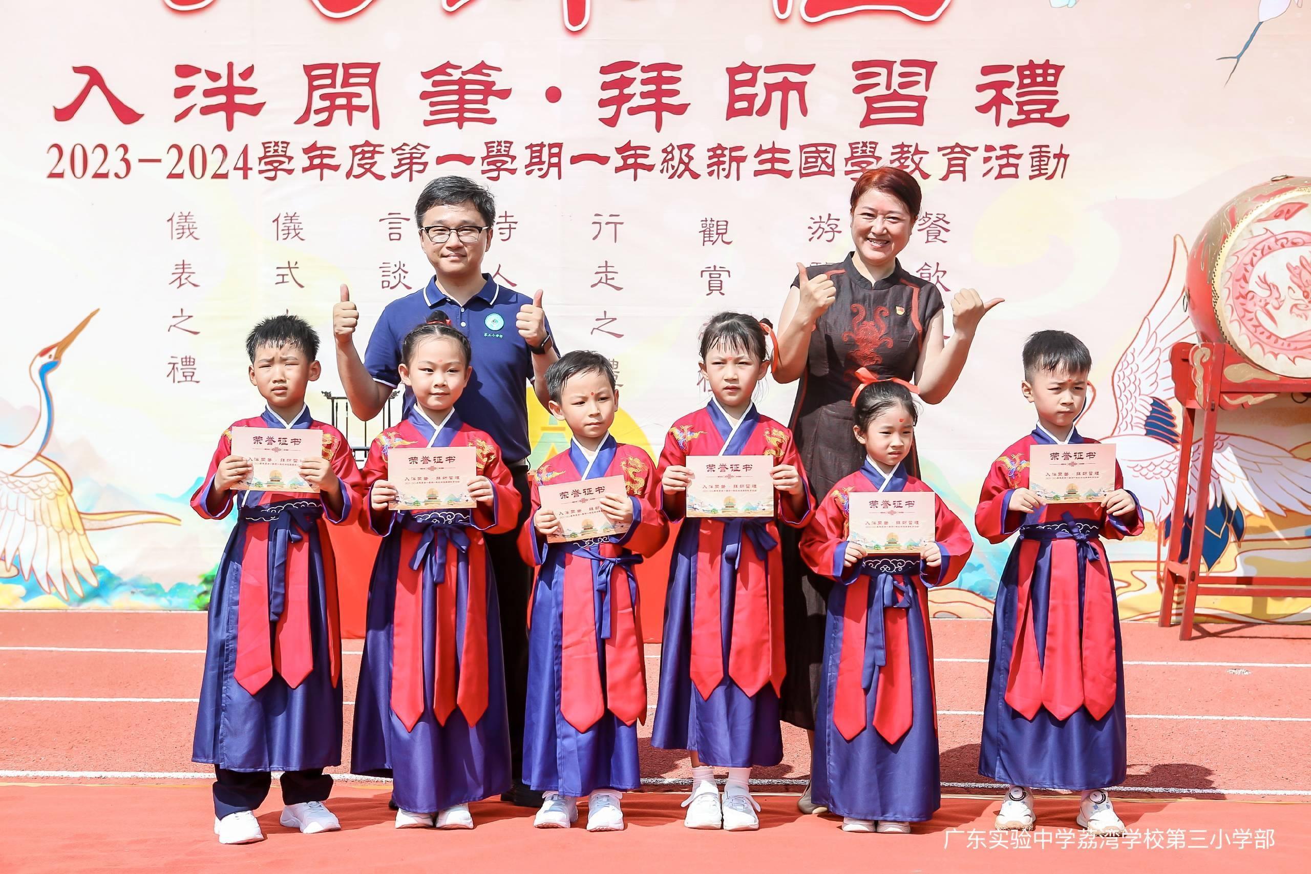 9月3日上午,广东实验中学荔湾学校第三小学部(以下简称“省实荔湾三小”)为2023级新生举行了“入泮”仪式,以特别的方式,激励学生珍惜读书机会、勤奋好学,同时又弘扬了我国优秀传统文化。