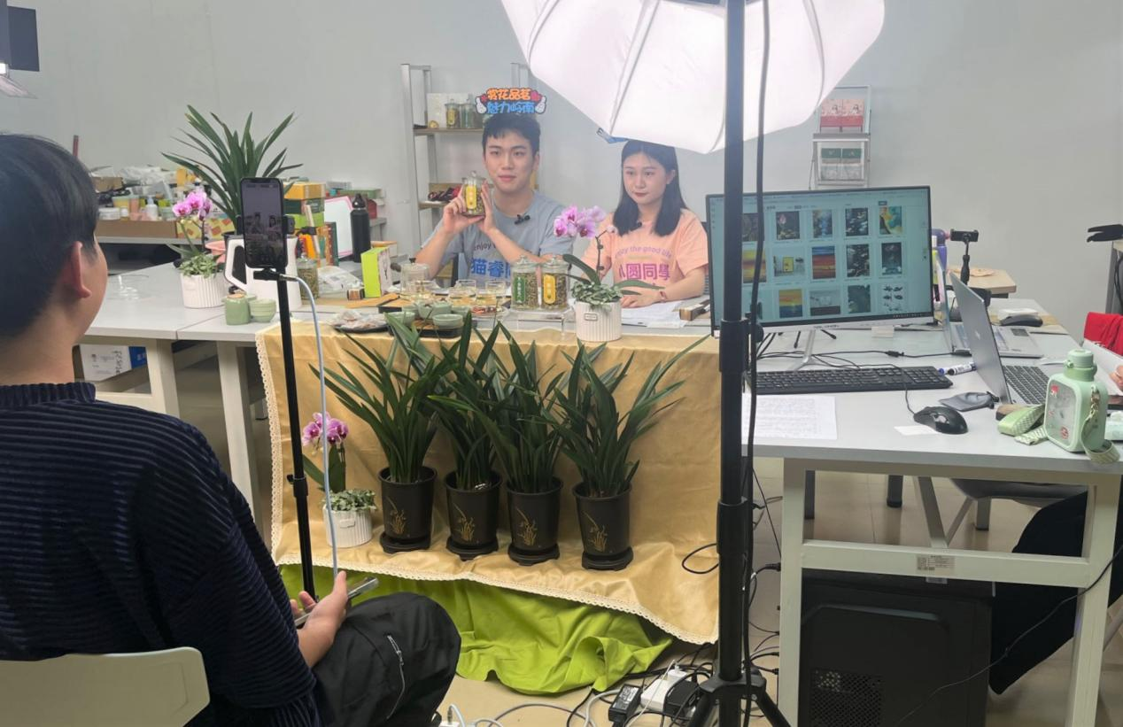 直播助农是一次“双赢”。对于花农而言,既解决了兰花售卖的难题,又节省运输与花卉保存成本,延伸产业链,发展出“兰花+营养土+新品种培育+种植盆+N”的多链条经济,实现用“科技+兰花”致富。对于学生而言,成立乡村产业振兴学院,免费的实训基地和实操运营,无偿的技术支持与业务培训,为他们在理论消化和技术锻炼的道路上撑起一片绿荫。