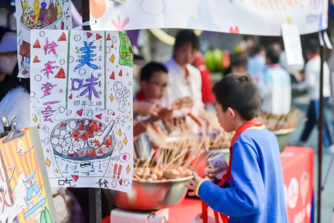 活动以摊位集市的形式开展,每个班级打造专属美食摊位,推出多款美食。师生家长齐上阵,家长们组成“大厨联盟”,根据事先分配的省份,制作当地特色美食;学生们则担当“美食推荐官”,为大家推荐本班的“拿手好菜”。