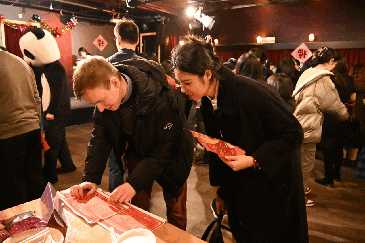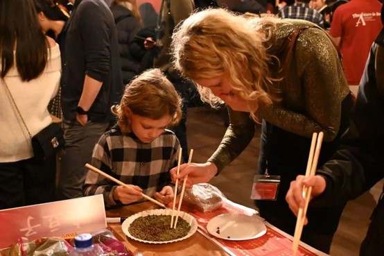 现场来宾们在灯笼上书写新一年的愿望,将亲手制作的中国结赠予亲朋好友和国际友人。一张张红色的春联纸用毛笔书写,以传统艺术的形式传递对新年的美好祝福与期待。中国红烘托起浓郁的“年味儿”,游园会的每个角落都洋溢着欢声笑语。
