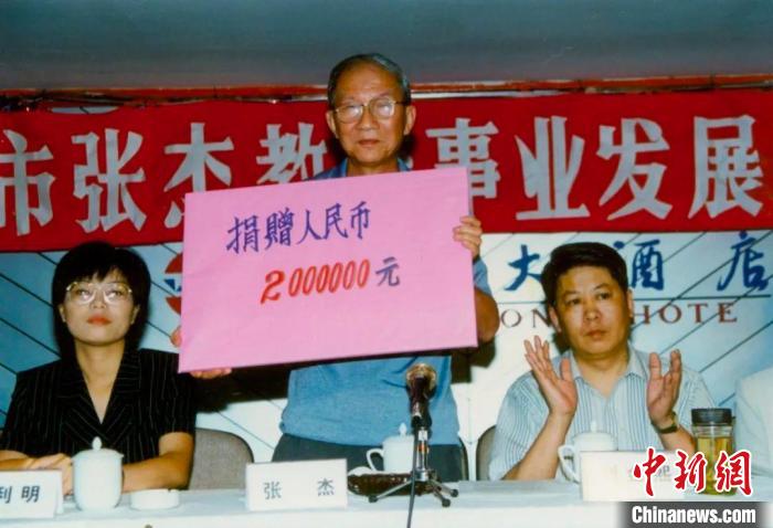 据上虞区乡贤文化研究会相关负责人介绍,1979年,张杰给上虞中学捐赠了一台价值3000元(人民币,下同)的彩电,这是他第一次为家乡教育事业捐物。40多年来,张杰自己省吃俭用,又为家乡教育事业大方捐款。