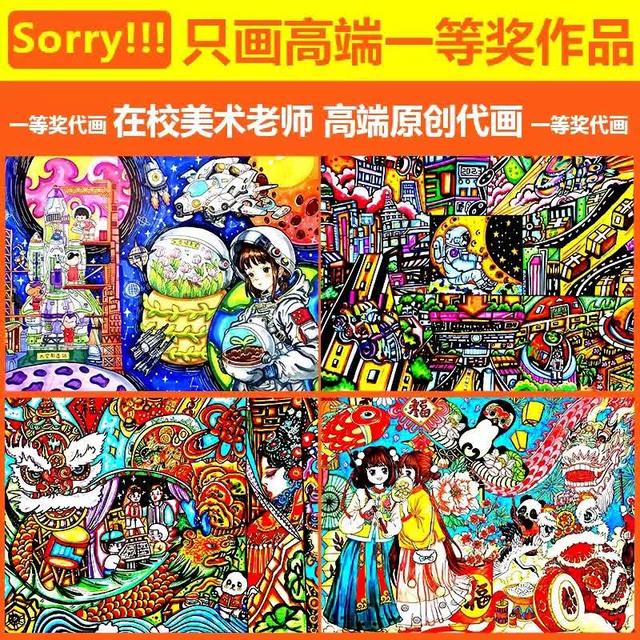 相比之下,有商家更为高调,赫然打出“只画高端一等奖作品”来博人眼球。“普通绘画品质适中,顺丰到付,99元,高端绘画品质较高,顺丰到付,119元。”客服发来两组对比图片,展示普通定制作品和高端参赛作品的不同,“一分价钱一分货,我们有好几百名老师,高端的优先安排水平高、获奖多的老师画。”