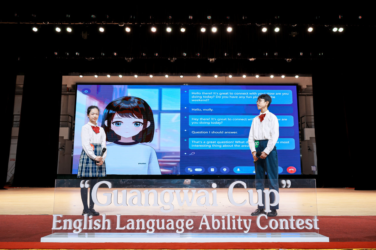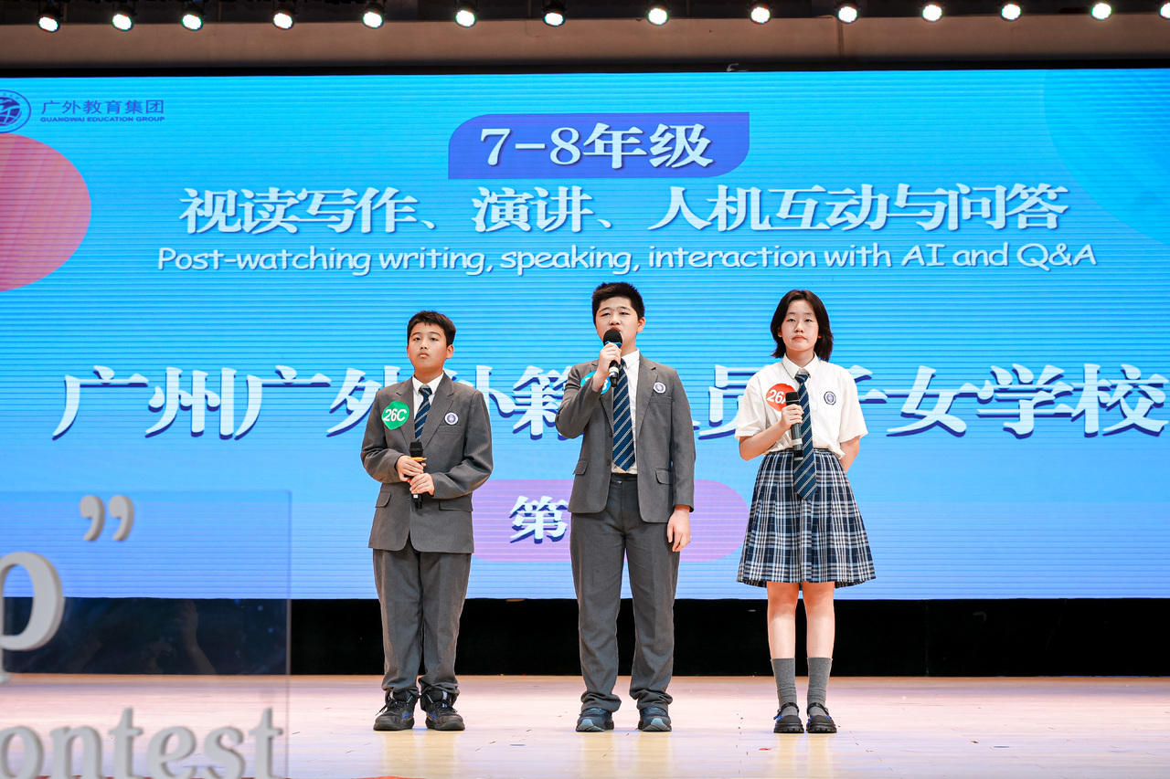 高年级组更加考验对文化的理解与对当下科技的思考,还有着与人工智能实时对话的环节,考验着学生的应变能力,“比赛前很紧张,但看到台下为自己鼓掌的同学们,心情放松很多。”一位来自白云区白云外国语中学的学子这样说。她颇感自豪地表示,无论是在准备比赛时还是比赛进行当中,自己都受益匪浅。