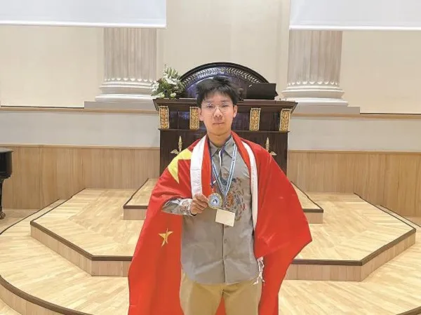 “倒数第二个被报到名字前,我觉得我完了,没想到宣布我是金牌!我太激动了,以至于披着国旗上台领奖时头脑都是空空的……”这个5月,对于上海高二男生徐子杨来说,注定不凡。