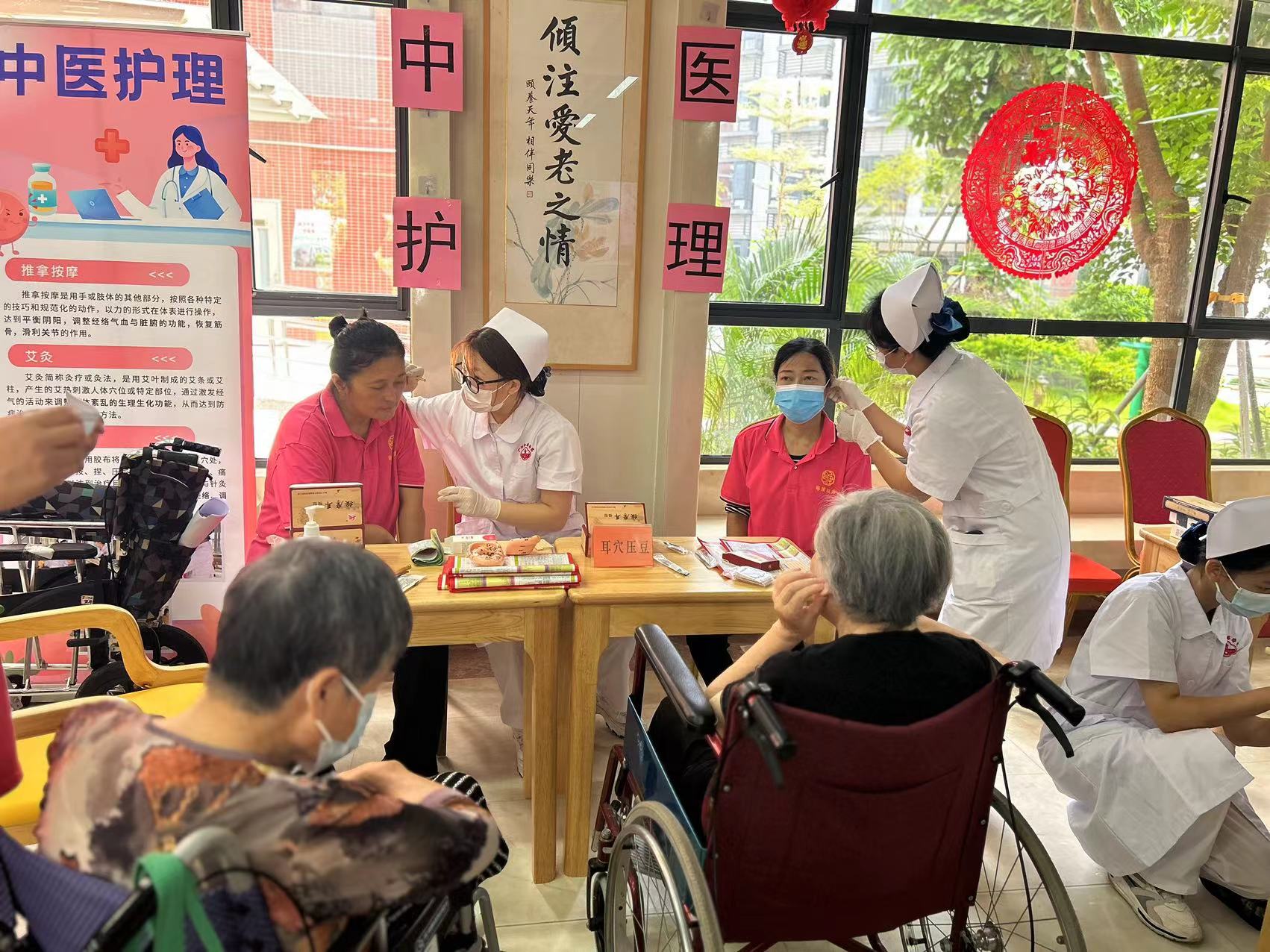 本次健康服务内容包括中医护理、生命体征测量、日常起居护理、营养评估等项目。师生们为老人进行艾灸,耳穴压豆,推拿按摩,测量血压、血糖等服务。日常起居护理组和营养评估组从老人们的饮食起居入手进行健康宣教和膳食搭配建议,并为老人修剪指甲、洗头发等,让他们在愉快的氛围中感受到舒适和尊重。