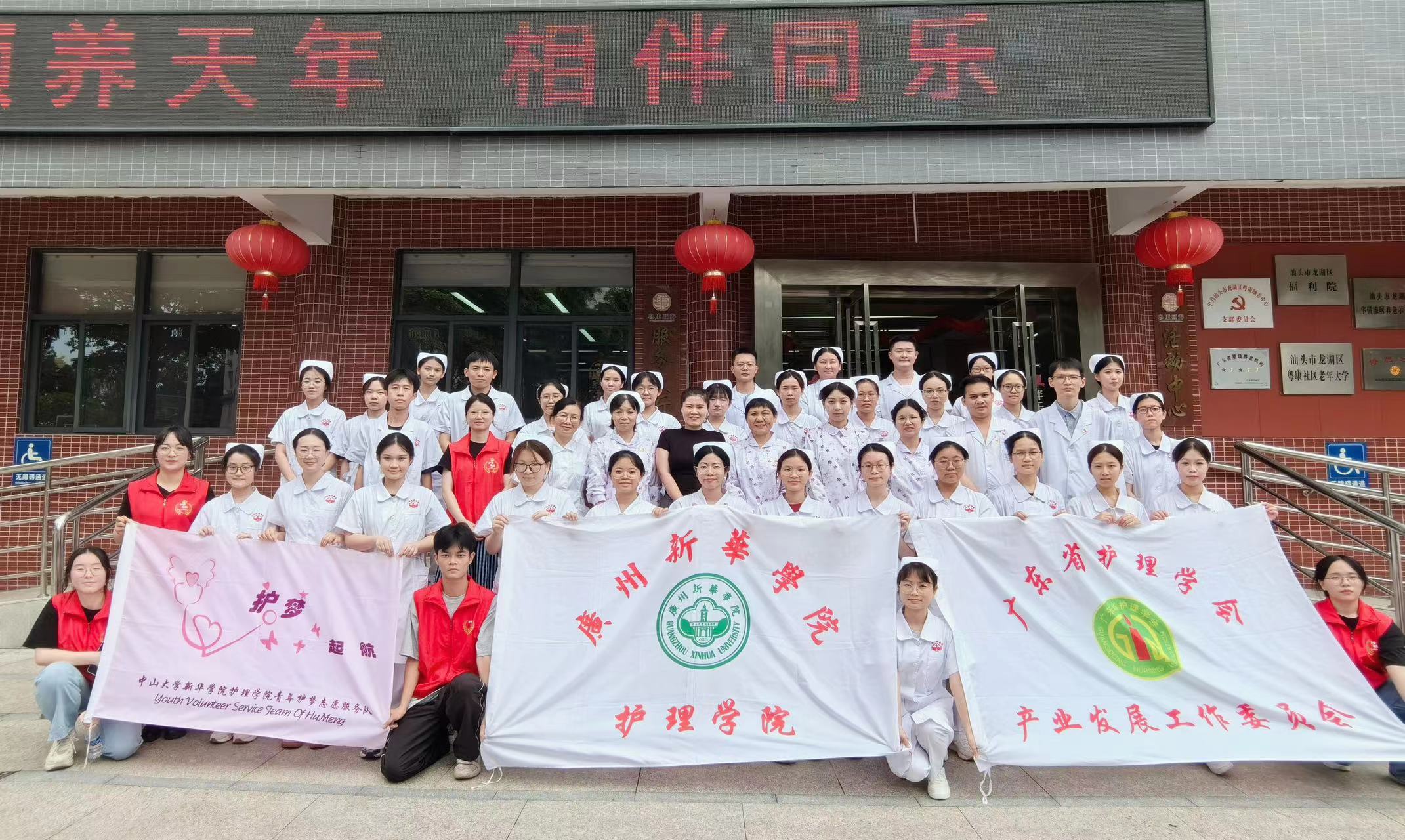 近日,广州新华学院护理学院执行院长王秀岚、副院长黄洛莹、护理教工党支部带领护理学院学生,走进汕头市龙湖区粤康颐养中心,开展了一场名为“温暖你我,健康相伴”的老年人健康志愿服务活动。