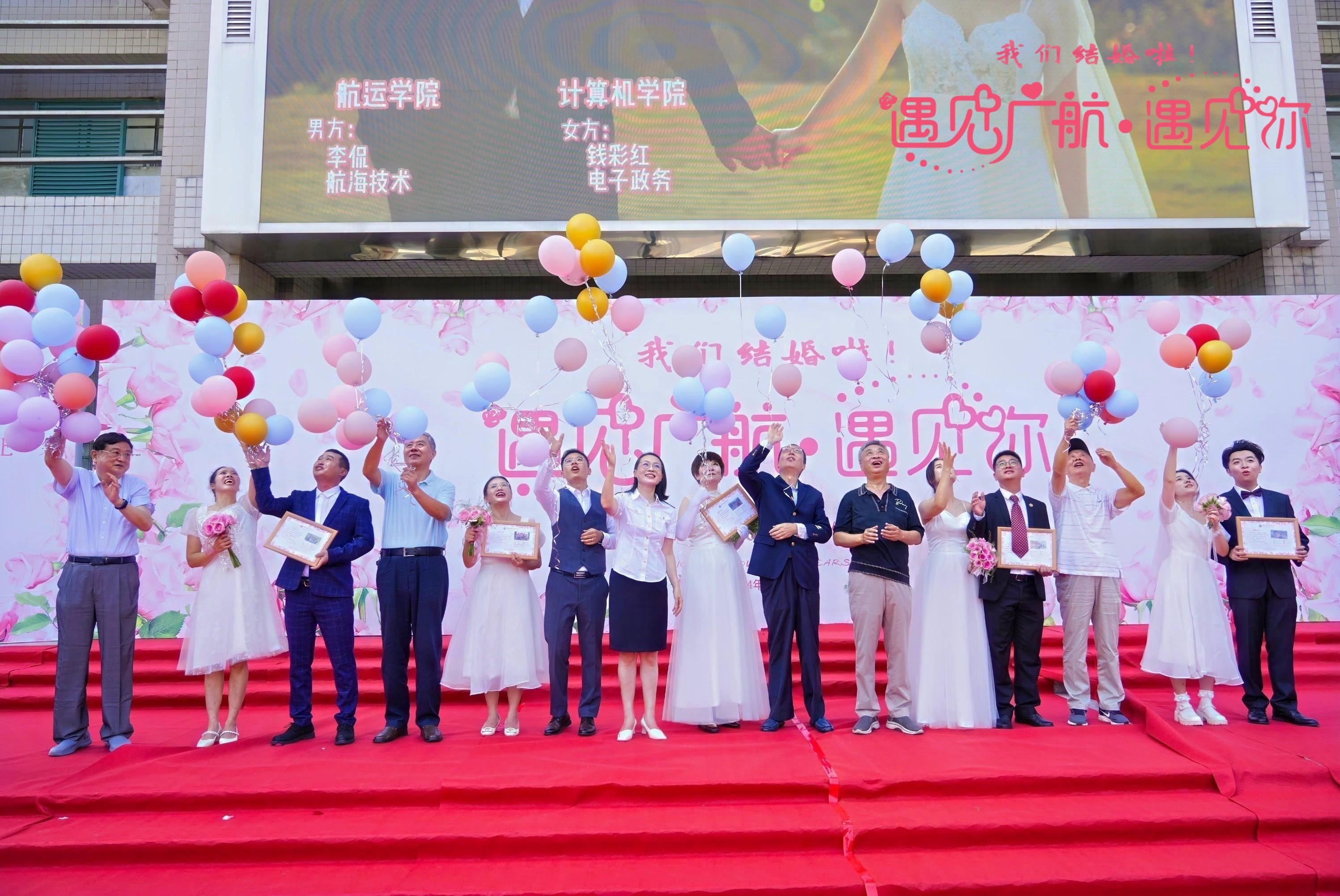 此次参加集体婚纱照拍摄活动的30对伉俪有新婚燕尔,亦有结婚秩年。他们缘生广航,情牵母校。他们在广航播下梦想和美好的种子,一路成长,将人生点缀得香花弥漫。日月同鉴,香樟为证,他们循着母校六十年发展脉络,回到梦想和爱情开始的地方,共赴这场爱意满满的浪漫之约,并在母校师友和亲朋的见证祝福下,重温爱的誓言,留下爱的印记。