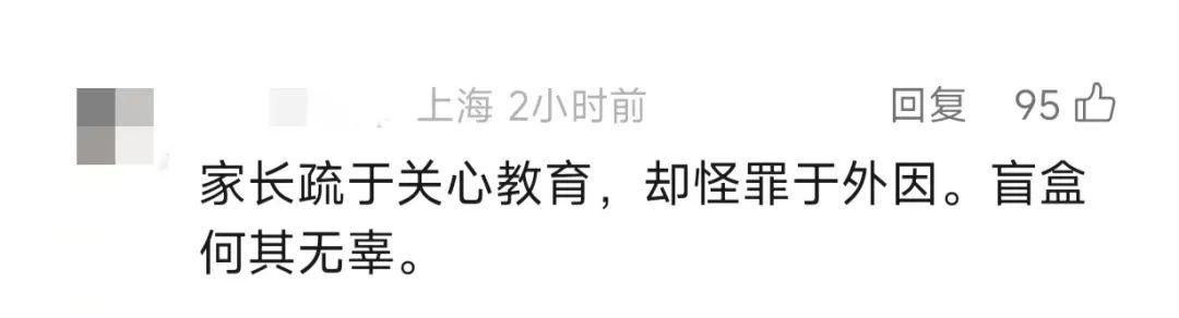 也有网友表示沉迷于盲盒的孩子,可能是家长疏于关心教育。
