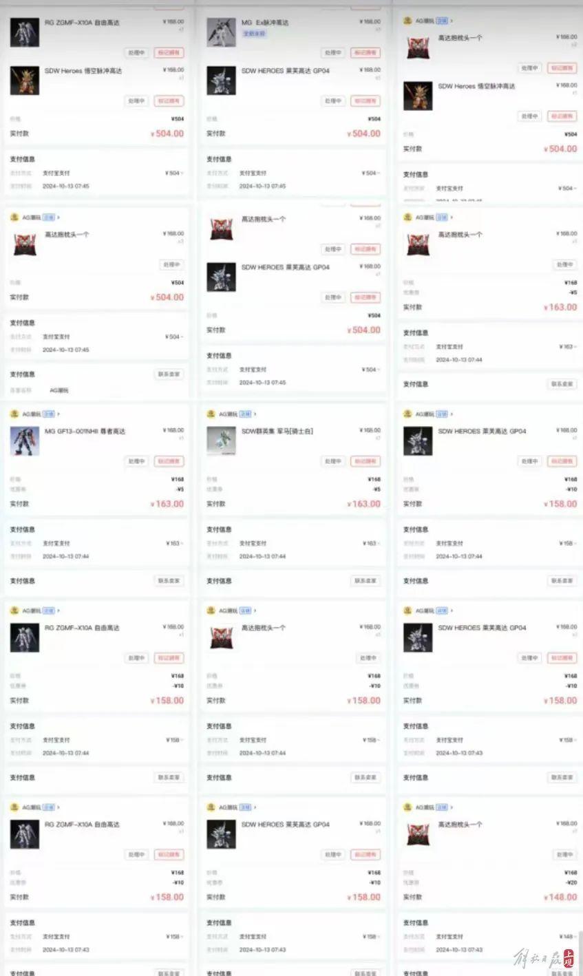 10月13日早上七点多,赵先生刚睁开眼,看到自己的年仅7岁的小孩拿着他的手机,不知道在捣鼓什么。凑近发现,小孩正在千岛的“奇货”里玩“抽赏”游戏,看到赵先生醒了,嘴里喊着“爸爸!爸爸!我帮你抽到高达啦!”本来没当一回事,直到赵先生翻了软件的记录才发现,不到十分钟的时间里,小孩在同一款“抽赏”中竟已花费了近两万元,抽到了一些高达模型、抱枕等。