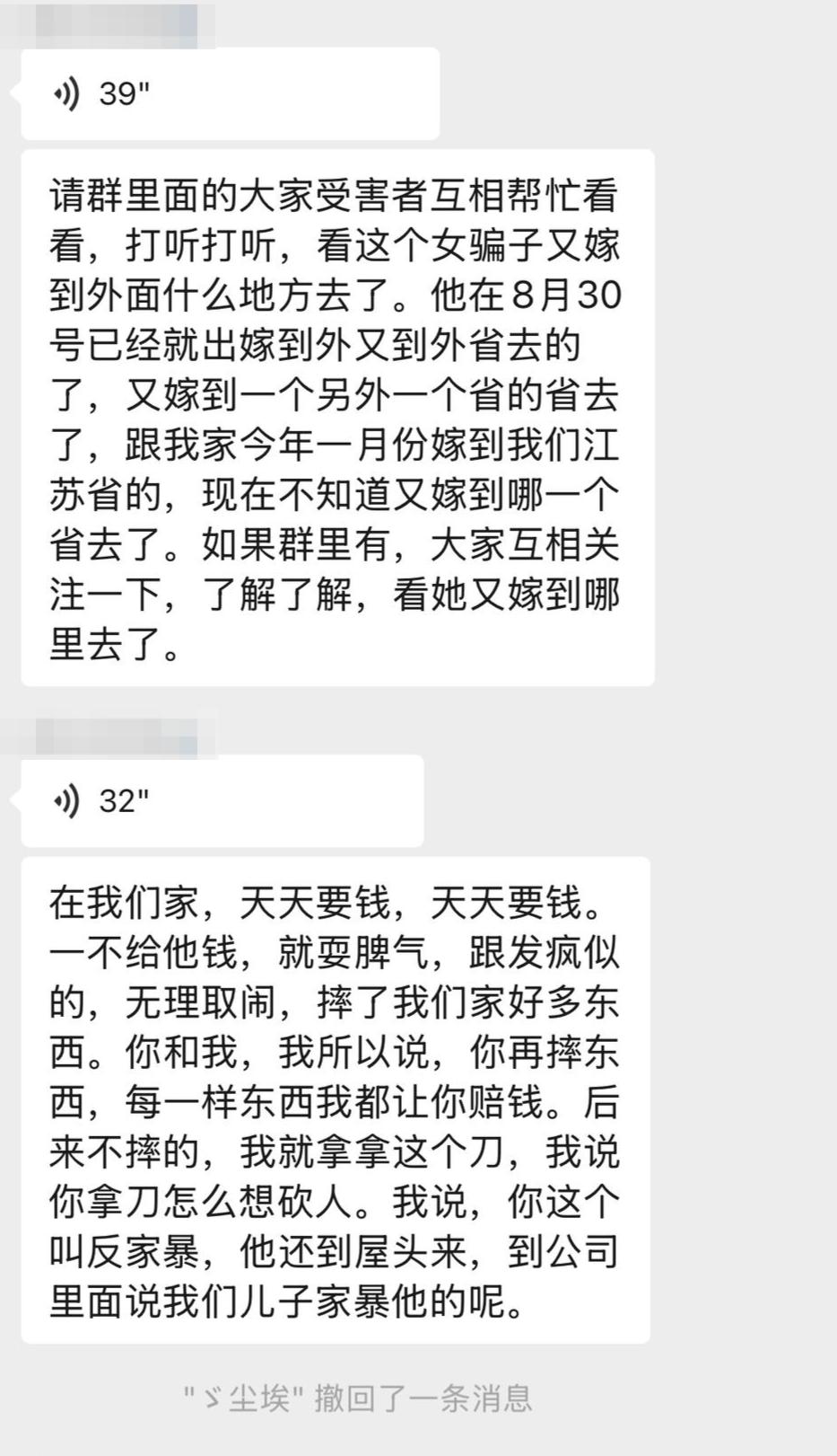记者进入了两个共300多人的微信群,里面都是“闪婚”失败后想要挽回损失的当事人和家属。曾经,他们带着全部的积蓄,在当地婚介或“熟人”带领下,试图前往贵州寻找自己的幸福。