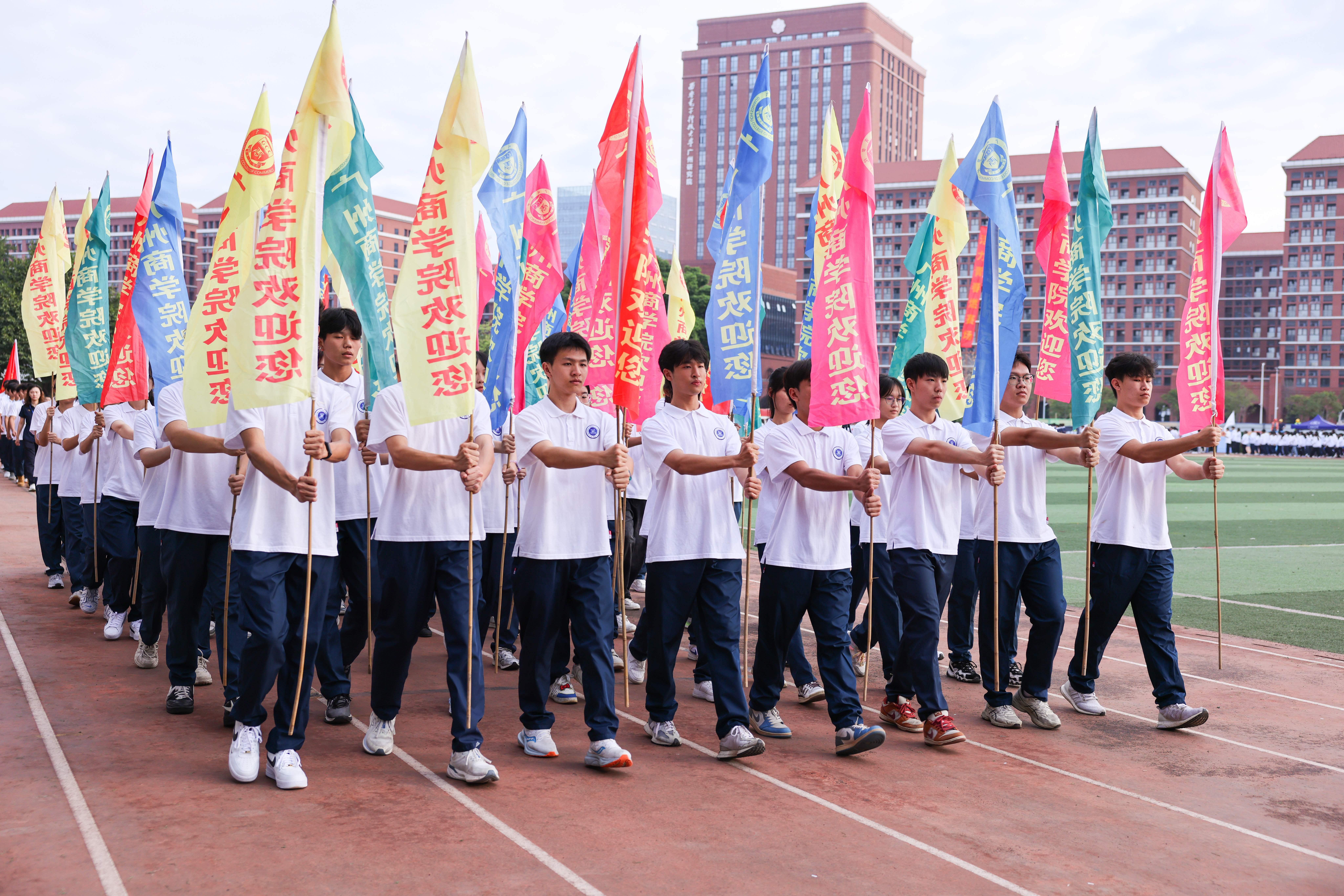 近日,广州商学院第二十四届运动会在田径运动场开幕。