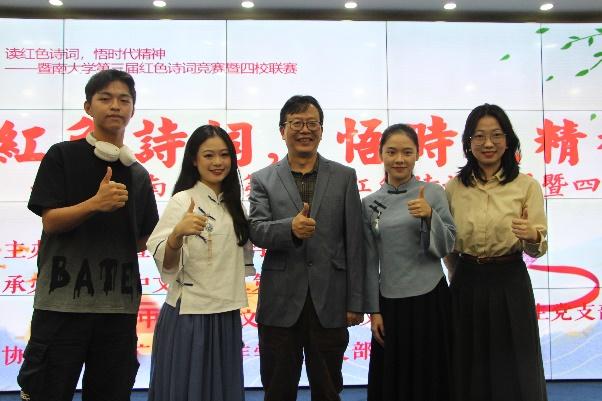 11月23日,由暨南大学文学院党委主办,中文系教工第二党支部、中国古代文学与古典文献学硕士研究生党支部承办,广东省写作学会党支部协办的“读红色诗词,悟时代精神”——暨南大学第三届红色诗词竞赛暨四校联赛在暨大举行。