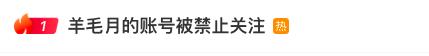 “羊毛月的账号被禁止关注”话题,迅速登上博热搜第一。