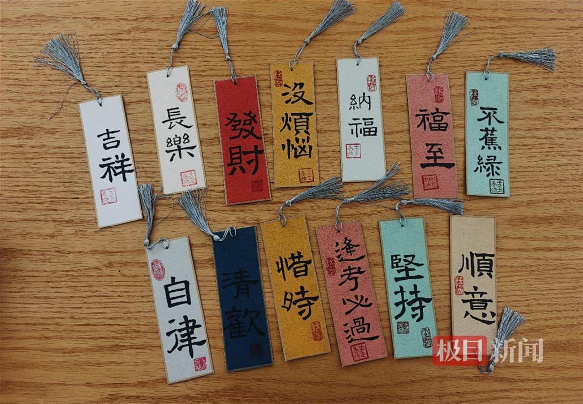 “工作之余给同学们写的,断断续续用了半个月准备好,国风书签、手写汉字、墨韵飘香,自有它的魅力和情意,不用多说,学生能感受得到!”方玉燕介绍,自己是安徽黄山歙县人,家乡素有砚台之乡的美誉,而她从小也生活在一个书香门第的家庭。方玉燕至今记得,小时候家中的老宅里,爷爷总是坐在那张古朴的书桌前,耐心地教自己诵读《朱子治家格言》。爷爷的声音低沉而醇厚,逐字逐句地为她讲解其中的深意。讲解完毕,便是书写练习,她小手紧握着毛笔,一笔一划地临摹,爷爷在一旁不时地给予指导;父亲在日常辅导作业时,对她的书写也严格要求,从笔画的粗细到字体的结构,都悉心指点。