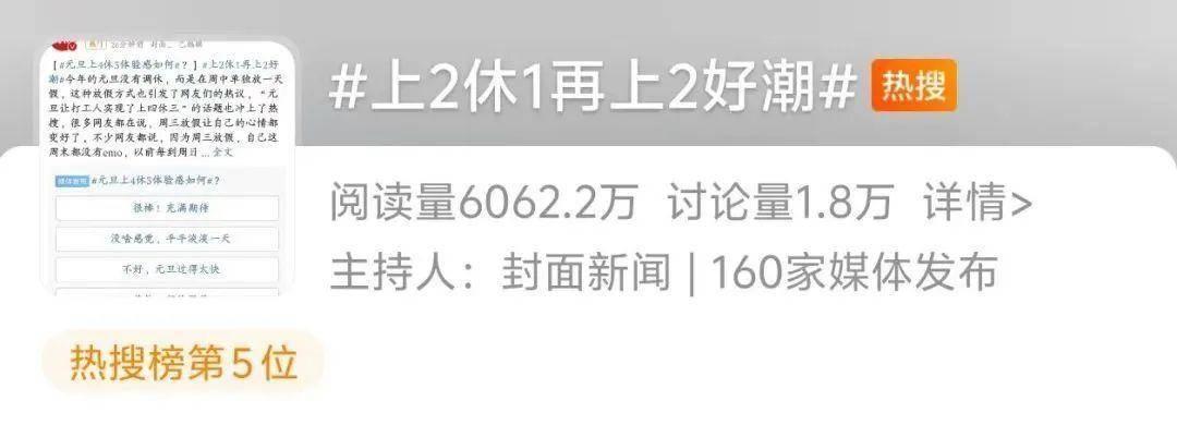 对于“上二休一上二再休二”的模式,部分网友表示“已上瘾”,希望以后有更多的机会能在一周时间里“上四休三”。但大多数网友也承认,从现实角度考虑,绝大多数单位和企业都没办法频繁接受员工“上四休三”。