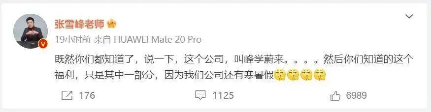 当晚,张雪峰发文回应称该福利只是一部分,公司还有寒暑假。