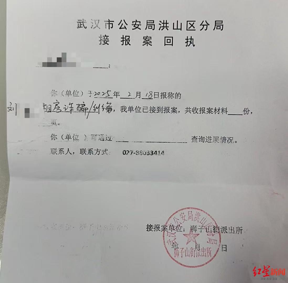 武汉市公安局洪山区分局狮子山派出所开具的接报案回执显示,2月18日,该所已接到相关警情。据报道,2月20日,狮子山派出所工作人员称,案件仍在调查中。2月21日,记者联系狮子山派出所了解调查情况,未获回复。