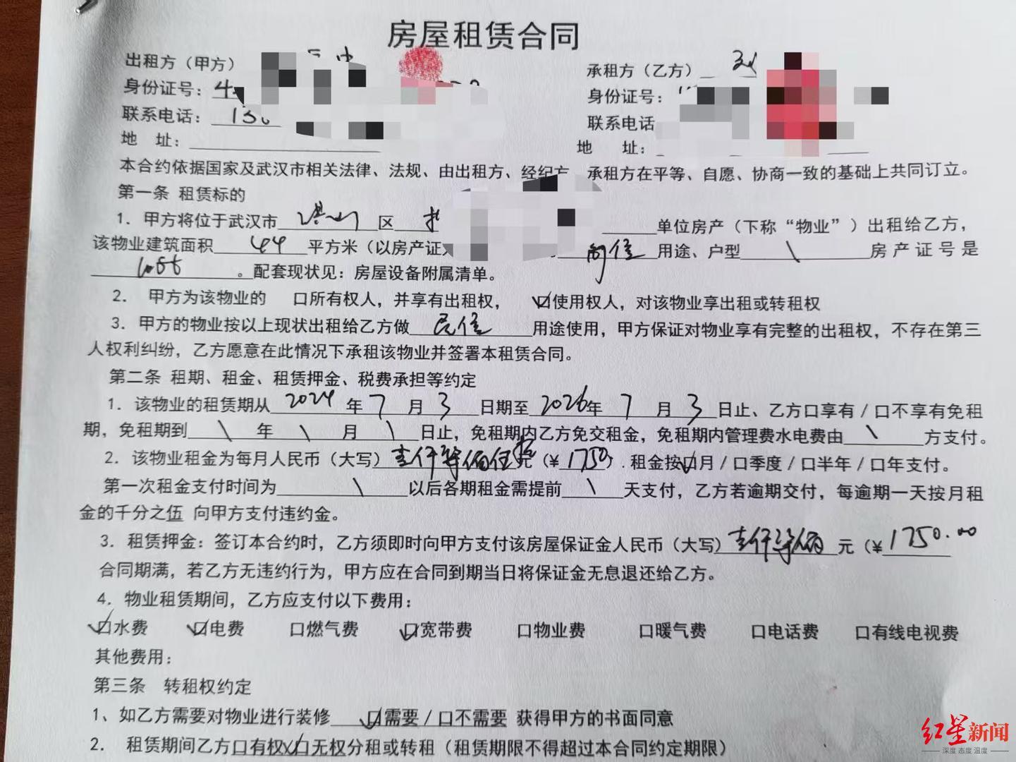 华中农业大学研一学生张同学也是刘某龙的租客。张同学表示,2024年9月,她在向“二房东”刘某龙租房时,查看过刘某龙与房东的原始租房合同,但当时并未仔细看合同内容,直到最近才发现刘某龙是违约转租。张同学向红星新闻记者提供的原始合同照片显示,刘某龙与房东约定,租赁期间刘某龙无权分租或转租。