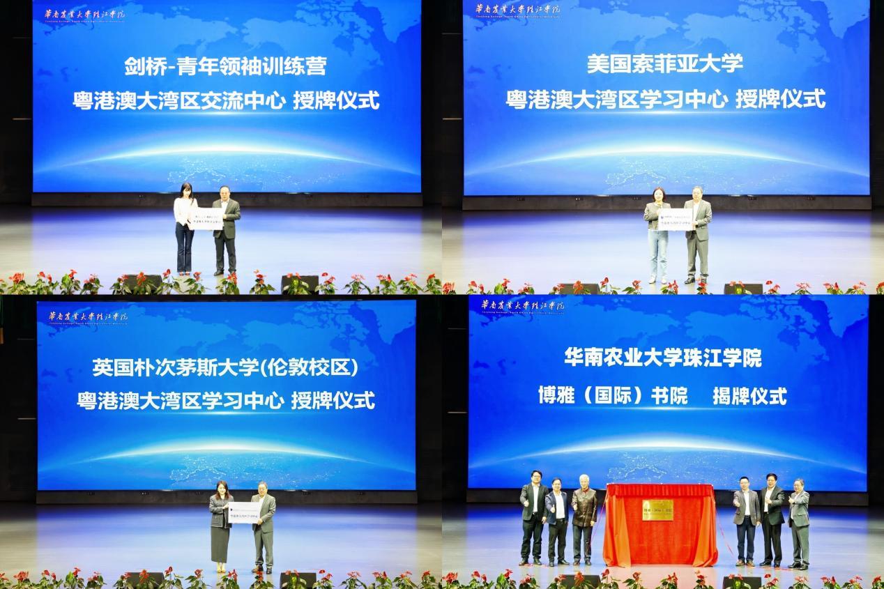 论坛期间,举行了多个重要授牌和揭牌仪式。剑桥-青年领袖训练营粤港澳大湾区交流中心、英国朴次茅斯大学(伦敦校区)粤港澳大湾区学习中心、美国索菲亚大学粤港澳大湾区学习中心以及博雅(国际)书院相继授牌与揭牌。博雅(国际)书院是华珠与国外高校合作开展的国际教育平台,旨在通过提供本硕直通、联合培养、语言培训等服务,助力学生提升全球竞争力与国际化视野。这些海外合作中心和书院的成立,标志着华珠在国际化人才培养方面迈出了坚实的一步,将为师生提供更多的国际交流和学习机会,助推学校国际教育工作的高质量发展。