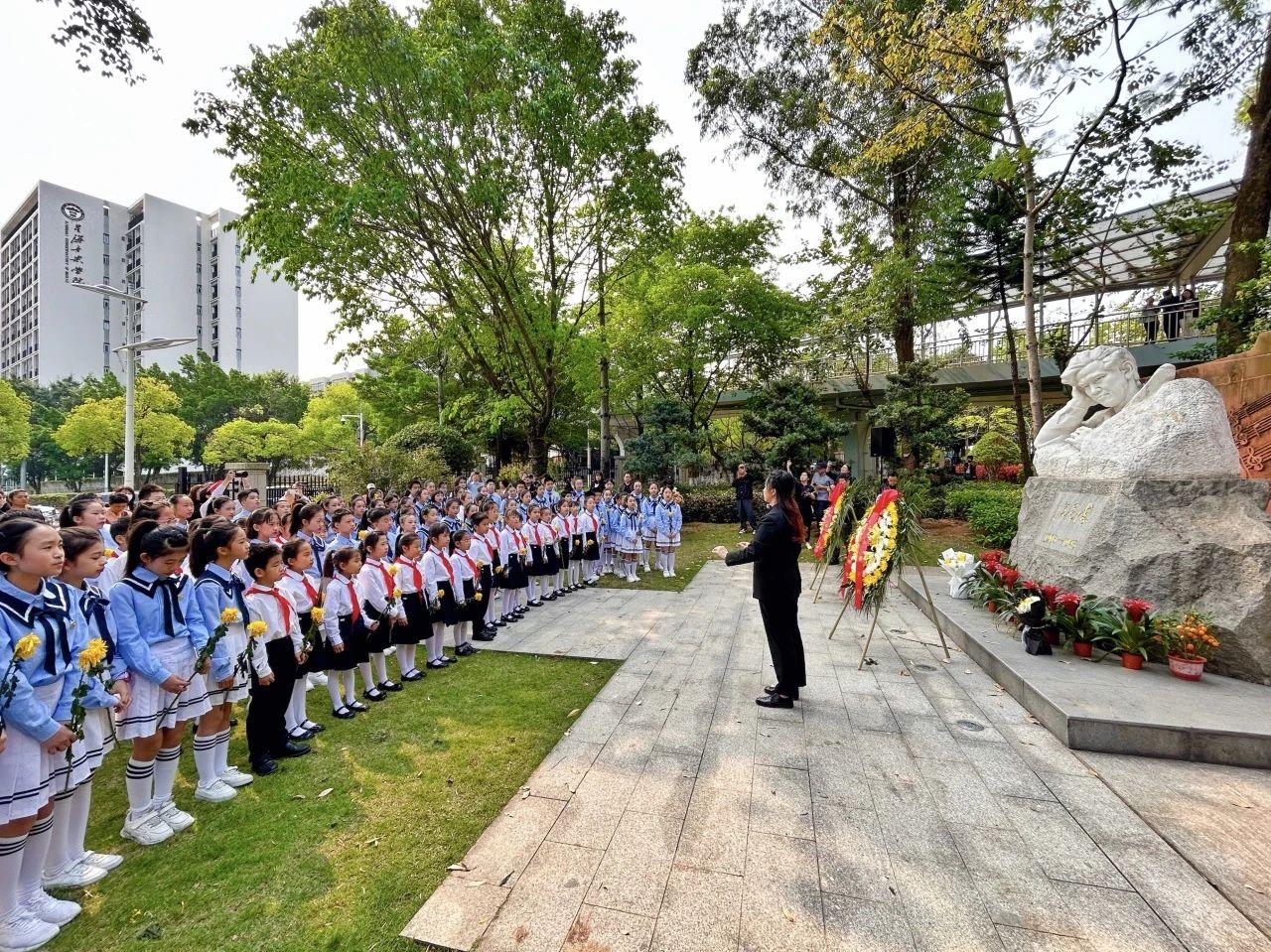活动现场,广大附小星光合唱团与小云雀合唱团一起,用清澈纯净的童声献唱了《冼星海纪念歌》。少先队员们庄重的神情、挺拔的身姿,与胸前的红领巾交相辉映,构成了一幅动人的画面。