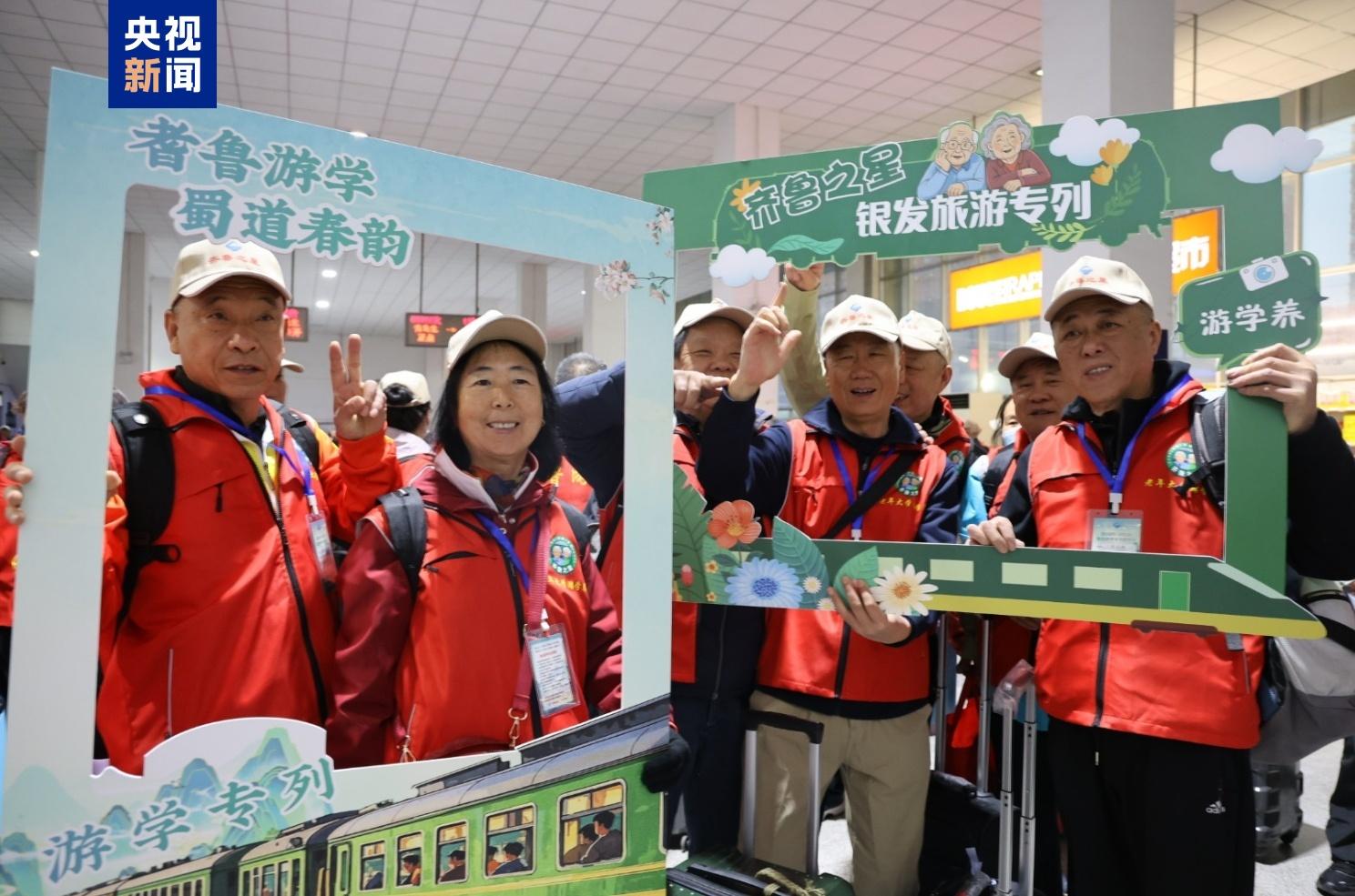 随着银发经济的赛道逐步拓宽,老年文旅、康养、教育等细分领域的消费场景日趋丰富。4月6日,2025年山东首趟齐鲁之星“游学养”银发专列Y482/3次从济南出发,载着400余名老年旅客开启为期10天的“耆鲁游学 蜀道春韵”川渝文化之旅,让银发老人在列车上也能老有所学、老有所养、老有所乐。