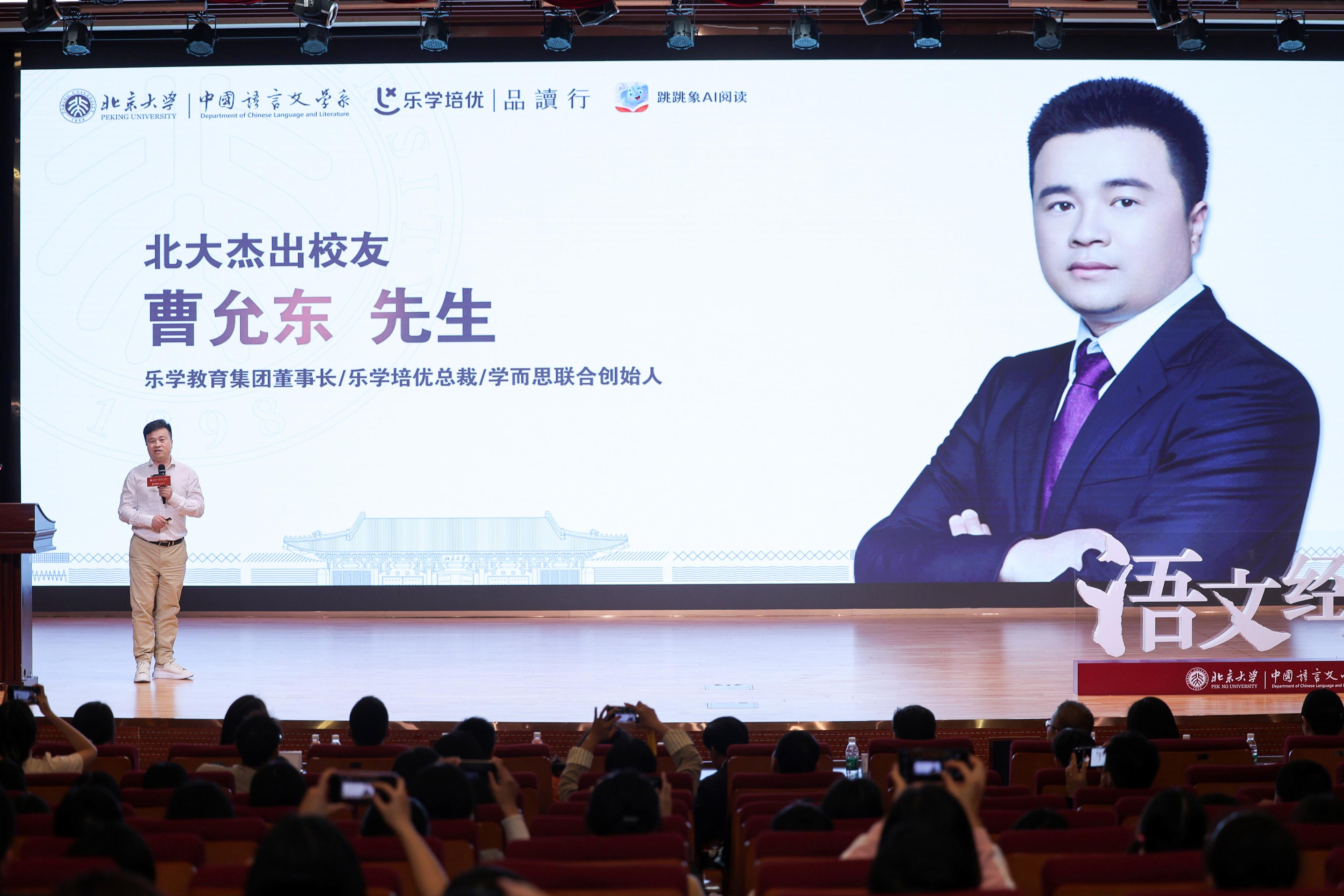 乐学教育集团董事长、总裁曹允东先生作为北大学子与教育创业者,在致辞中深情追溯了北大中文系对自己教育理念的启蒙:“在燕园求学时,中文系教授们对经典的当代解读,让深刻理解到’经典在品读’的真谛。创立品读行时,我们始终坚持’用经典滋养生命,以读写贯通古今’的初心。”乐学培优致力于促进孩子全面成长,提升孩子应对生活变化和 AI 冲击的能力,培养孩子幸福生活、面对世界、拥抱世界变化的能力。他特别强调,感谢北大中文系杜教授对品读行语文教材给予肯定,双方更通过在学术上的携手共创,实现以广州为基础,将优质语文教育资源,向深圳、武汉等地拓展,让全国各分校更多学生同步享受。他透露,接下来,乐学培优将联合北京大学中文系,挑选10名乐学培优广州分校语文老师到北京大学进行学习交流,提升师资水平。此外,还将选拔7至10名广州学生参加北大暑期访学活动,助力学生成长。