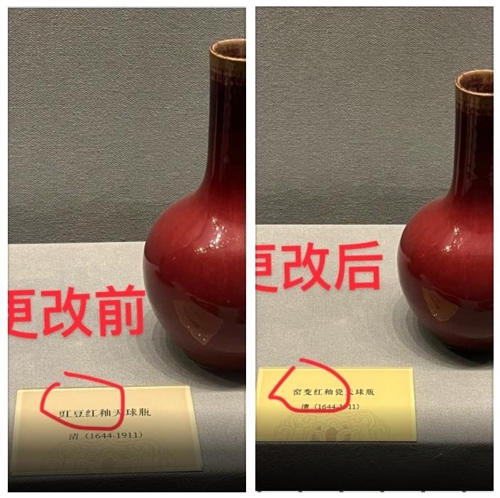 5月6日,山西太原第四十八中学校高一学生张斐翔在社交平台上分享了自己的一段经历:今年4月份,他游览太原博物馆瓷器展厅时,发现该馆收藏的多个瓷器标识出现错误或者不当。例如“红釉葫芦瓶”应改为“豇豆红釉瓷葫芦瓶”,“白釉开片瓷砚”应改为“仿哥釉瓷砚”,“红釉缠枝花卉纹碗”应改为“矾红地白缠枝花卉纹瓷碗”等。