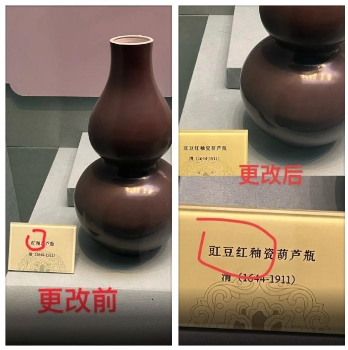 5月6日,山西太原第四十八中学校高一学生张斐翔在社交平台上分享了自己的一段经历:今年4月份,他游览太原博物馆瓷器展厅时,发现该馆收藏的多个瓷器标识出现错误或者不当。例如“红釉葫芦瓶”应改为“豇豆红釉瓷葫芦瓶”,“白釉开片瓷砚”应改为“仿哥釉瓷砚”,“红釉缠枝花卉纹碗”应改为“矾红地白缠枝花卉纹瓷碗”等等。