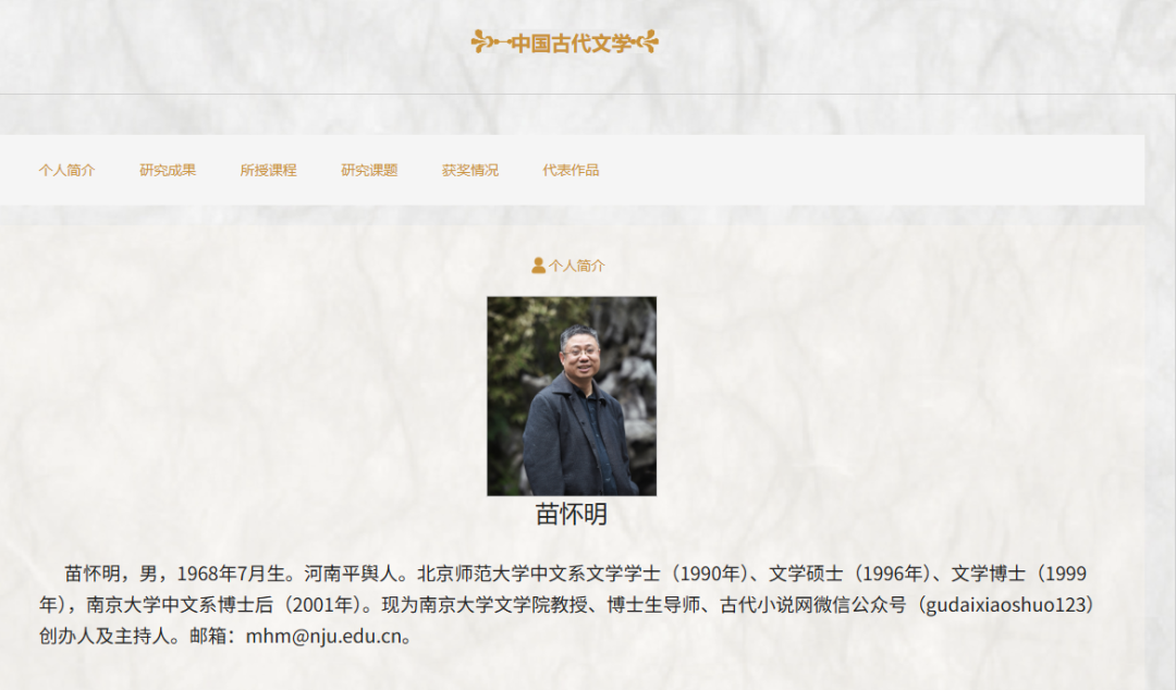 记者在南京大学文学院网站看到,苗怀明教授现为南京大学文学院教授、博士生导师,在《文学遗产》、《文献》、《红楼梦学刊》、《明清小说研究》等各类刊物发表学术论文一百多篇。
