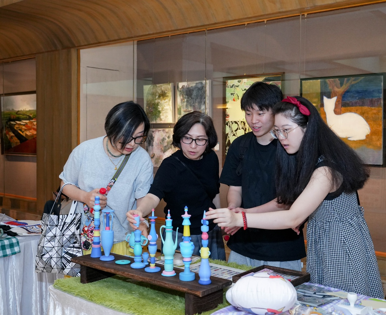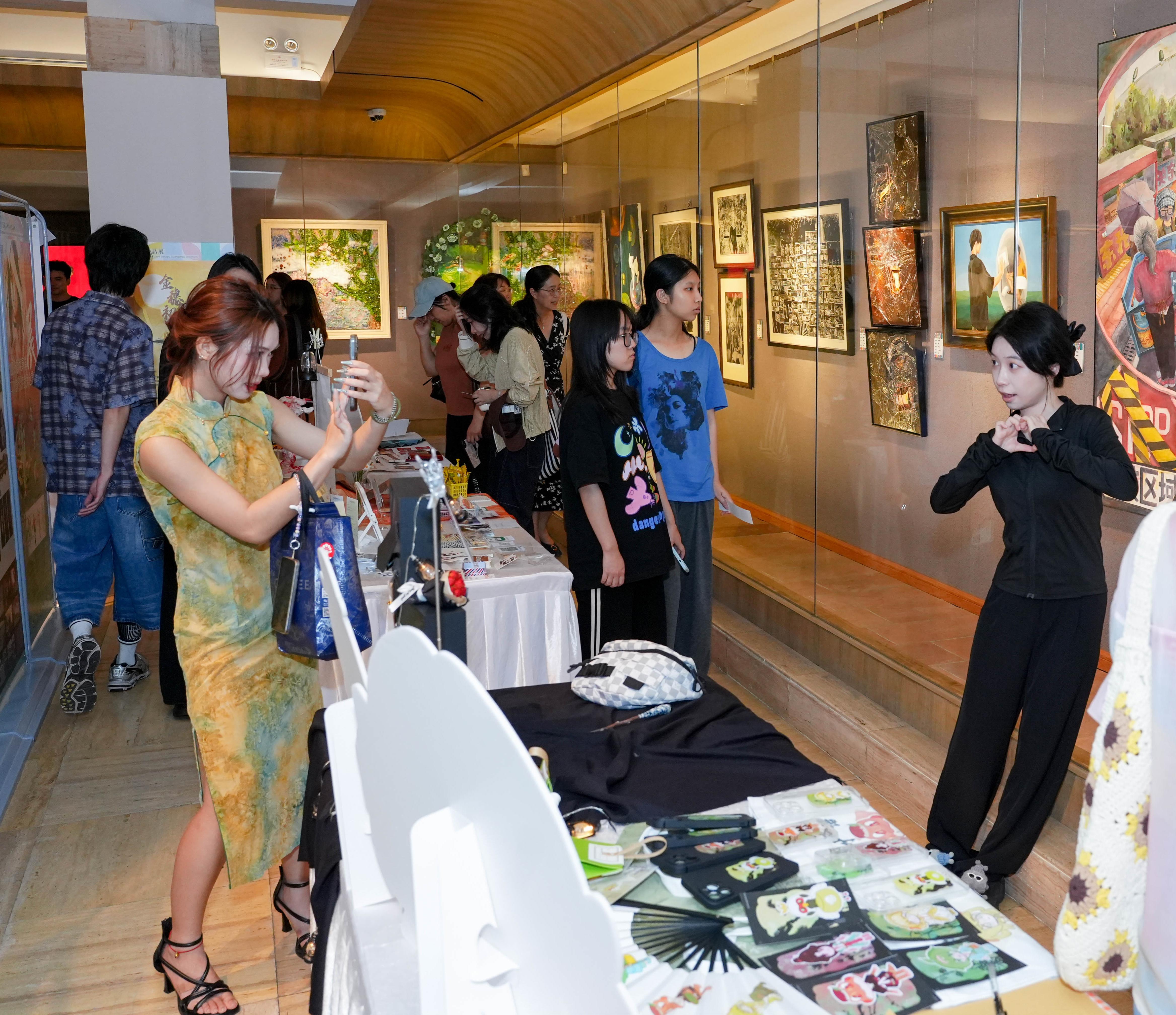 作品展分为美术绘画、数字媒体艺术、产品设计和环境设计四个展区。其中,美术绘画展区作品创作者们以传统技法进行当代表达,展现个体与时代的对话;数字媒体艺术展区以新媒体形式重新定义艺术的边界;产品设计展区呈现了从生活美学到时装时尚美学的创新方案;环境设计展区探索着人与自然、传统与现代的和谐共生之道。