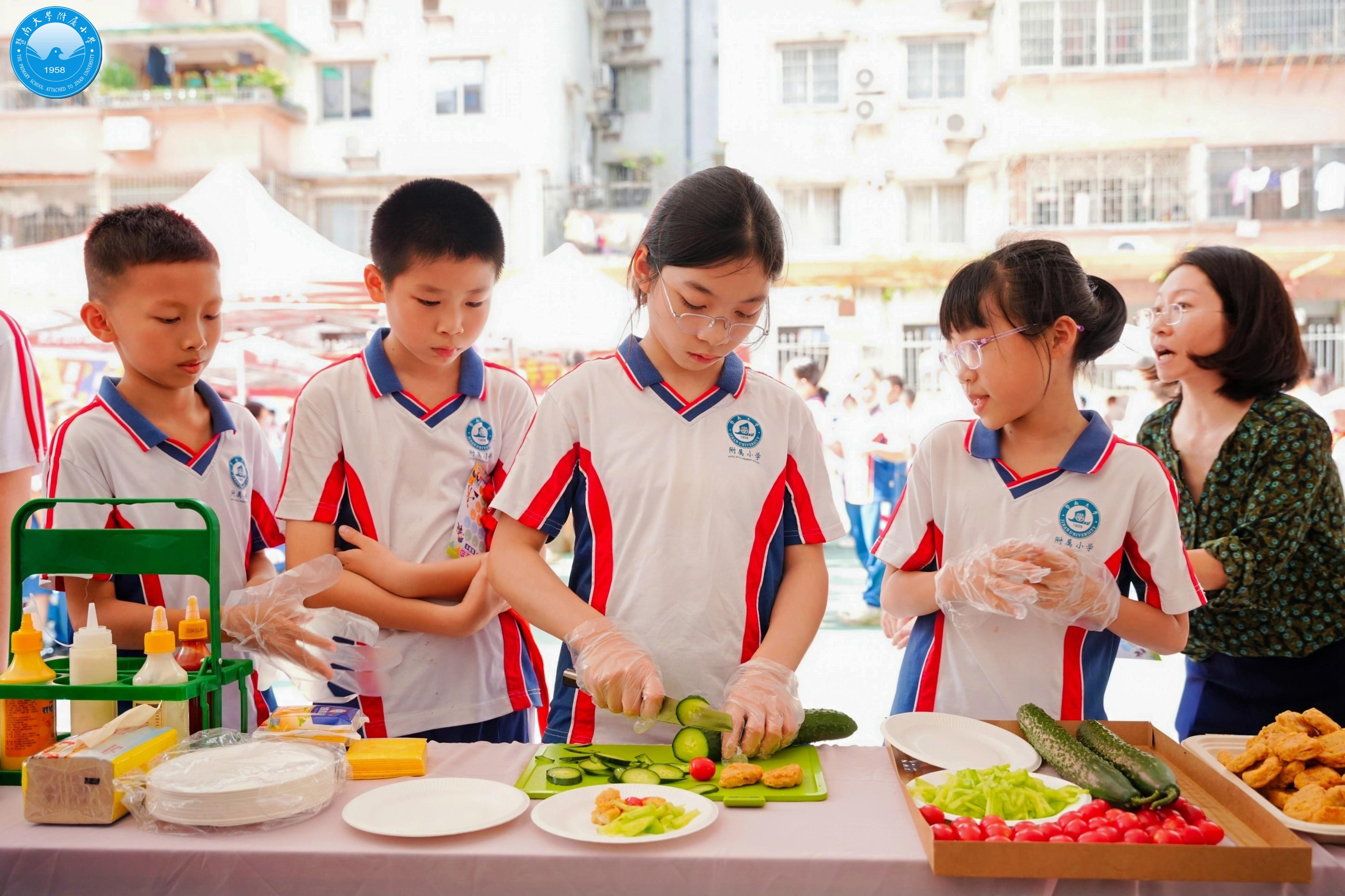 2024年,附小成立了大中小学劳动教育一体化建设联盟委员会,本次活动特别邀请了联盟校的二级学院——暨南大学应急管理学院和广州城市职业学院食品健康学院参与到活动中来。应急管理学院带来了急救互动体验,食品健康学院准备了趣味十足的绿豆糕制作,让同学们在互动中学习专业知识。