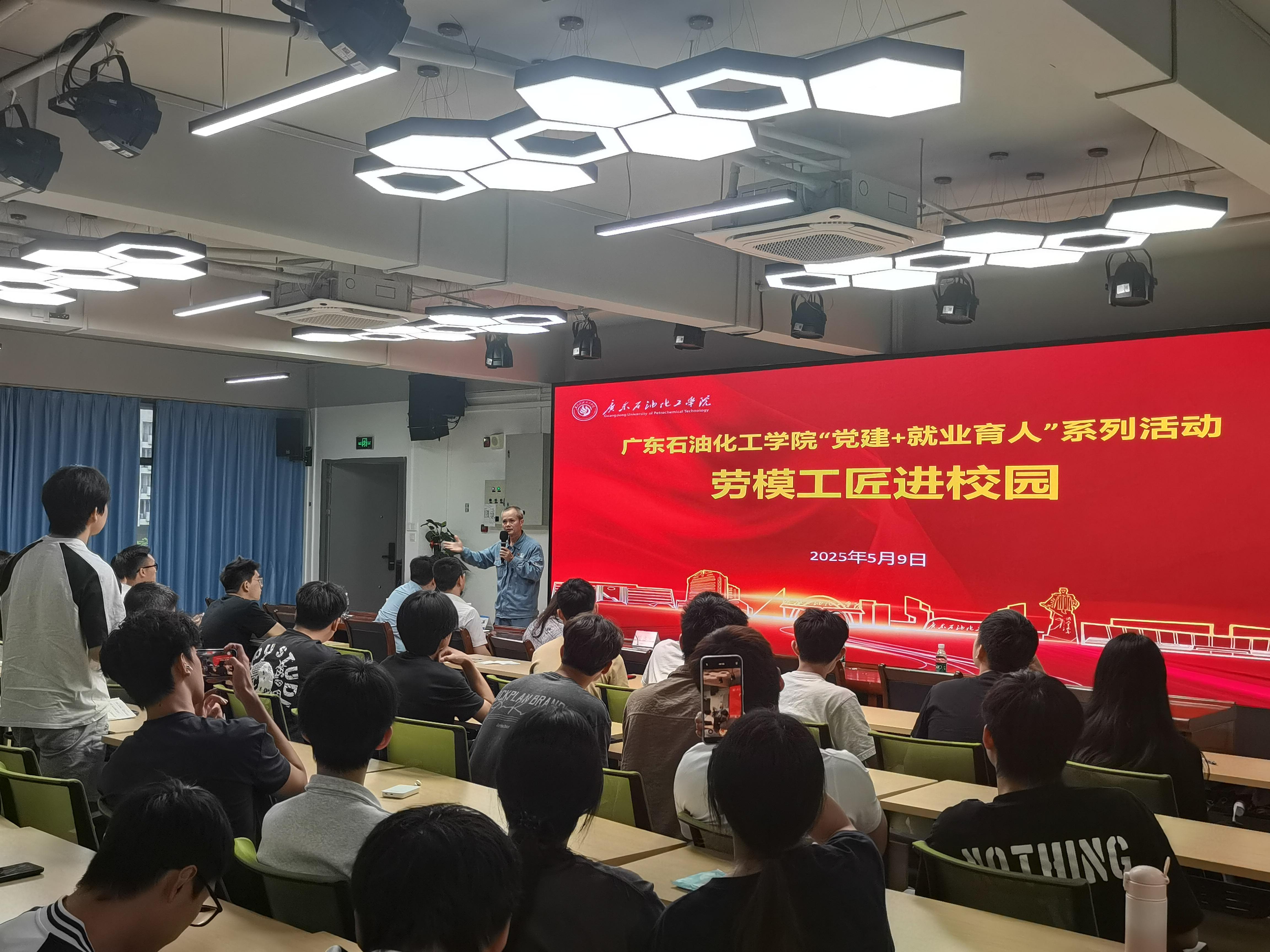 近日,广东石油化工学院联合茂名石化举办“党建+就业育人”系列活动之“劳模工匠进校园”主题宣讲活动,特邀茂名石化首席技师、大国工匠吴金源以《技校生也能成为大国工匠》为题讲授扎根一线35年经历。活动旨在大力弘扬劳模精神、劳动精神、工匠精神,充分发挥劳模工匠的示范引领作用,引导学生树立正确职业观与价值观,扎实推进新时代立德树人工程。