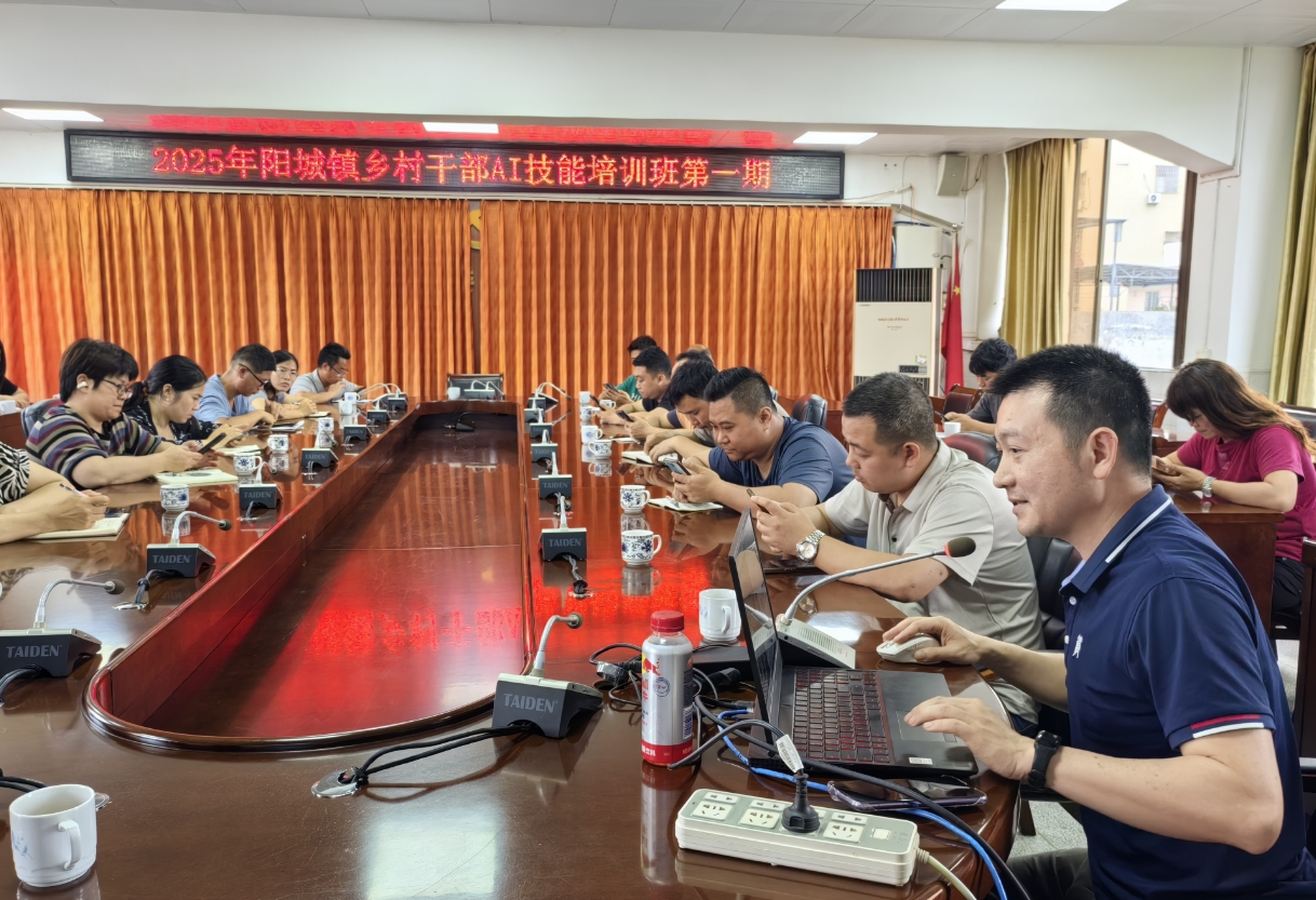 培训启动仪式上,阳城镇人大主席文旭华阐述了人工智能在提升乡村干部的行政效率、处理智能文档、辅助精准决策、推动智慧农业、优化民生服务等方面的关键作用,希望全体乡村干部带头积极学习,将AI技术切实应用到日常工作中。