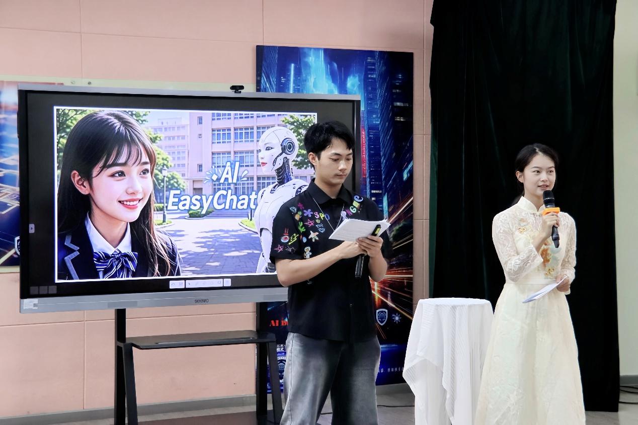其中,徐怡婷团队聚焦于AI智能代理在跨文化商务场景的应用;李炜煜团队引领观众体验了AI如何赋能大众娱乐,使音乐成为自我表达的新载体;张睿雯、李巧玲、胡晓晴团队分别解析了无人驾驶和低空经济的数字创新模式。这些展示内容体现了学生们对外语语言能力的熟练运用,展现了他们对人工智能和数字经济领域知识的深入理解,以及将两者有机结合的跨学科思维。