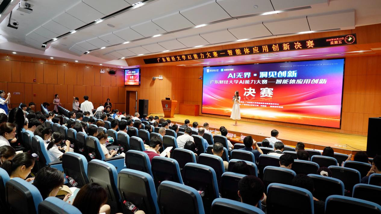 近日,广东财经大学举办首届“AI能力大赛——智能体应用创新”决赛。本次大赛旨在提升学生数智素养与实践能力,搭建产学研深度融合的交流平台。大赛以“AI无界・洞见创新”为主题,聚焦智能体应用创新,自今年3月启动以来,共吸引了来自15个学院的170余支团队、超500名同学参与。参赛团队中既有信息技术专业达人,也有来自法律、经济、管理、艺术等领域的“跨界玩家”。