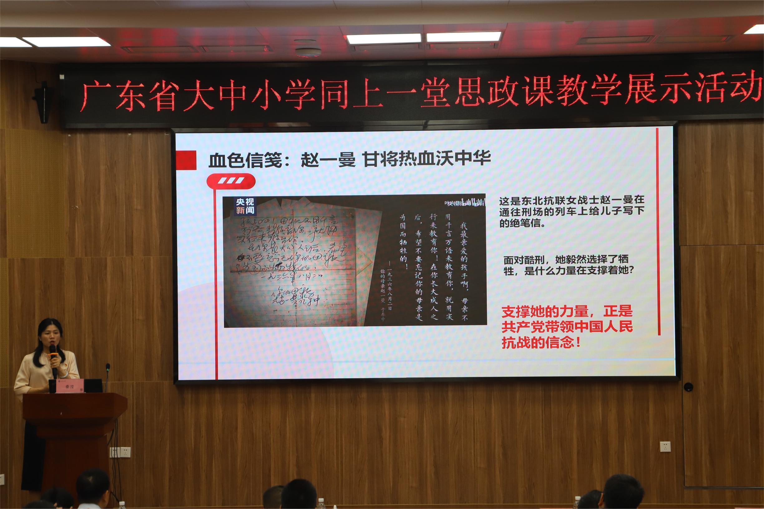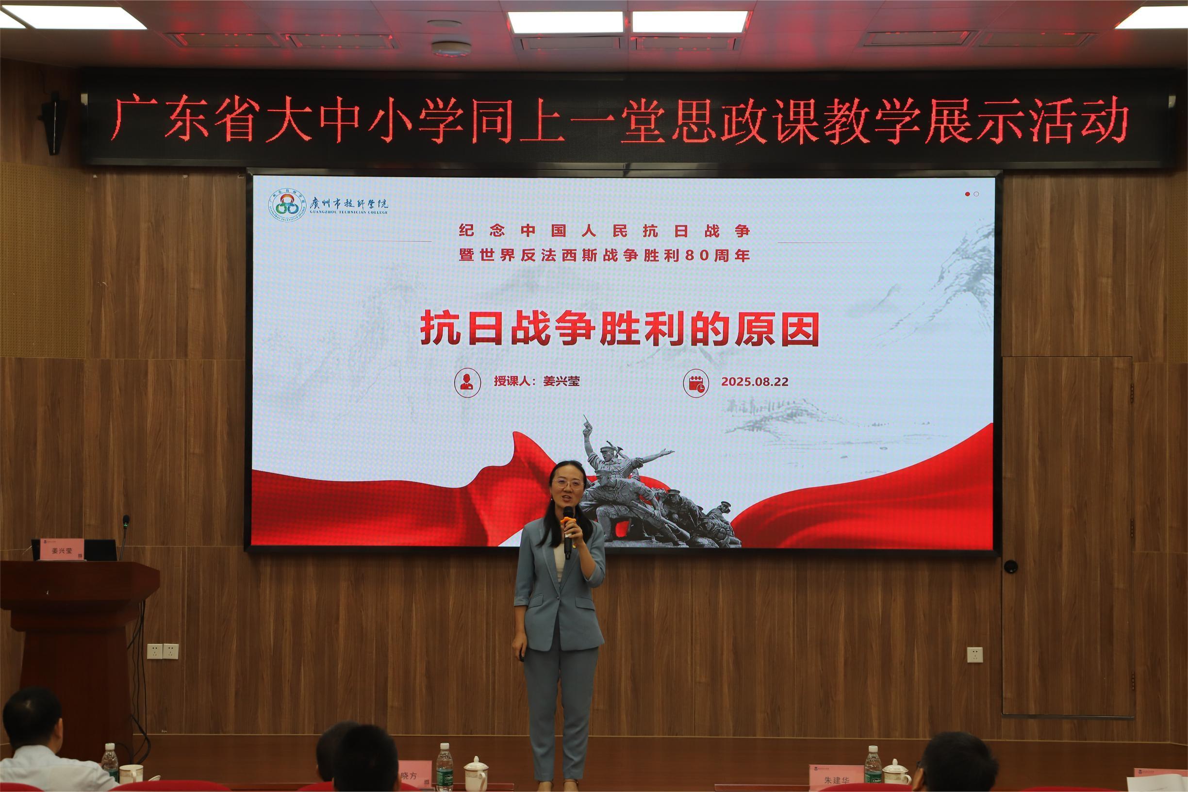 开学在即,如何让抗战历史在思政课堂中鲜活呈现,让伟大抗战精神滋养青少年心灵?8月22日,“纪念中国人民抗日战争暨世界反法西斯战争胜利80周年”广东省大中小学思政课教学展示活动在华南师范大学举行。来自全省小学、初中、高中、中职、高职、本科6个学段的思政课教师同台授课,以差异化教学设计诠释同一主题,生动展现大中小学思政课一体化建设实践。