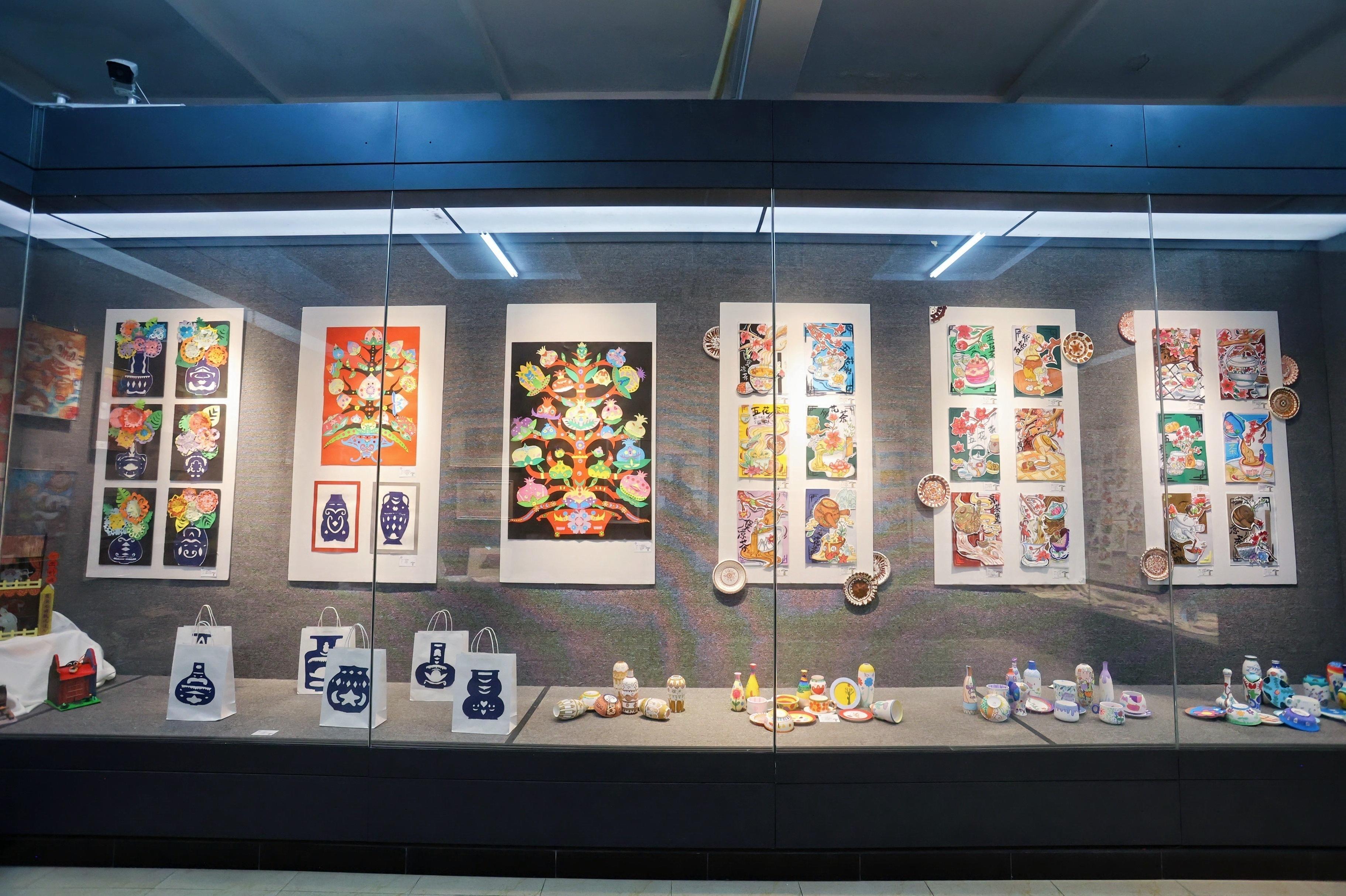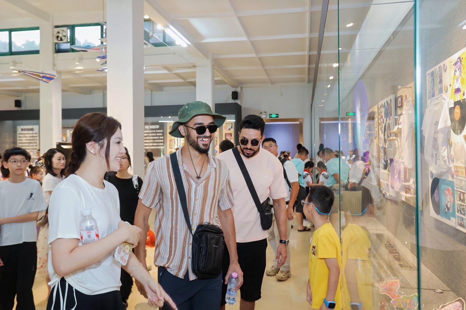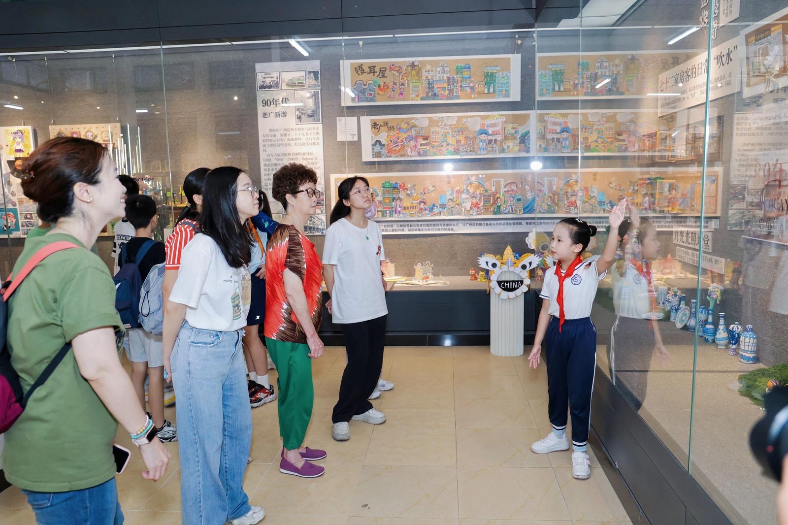 不少中外游客被学生们的作品吸引,驻足观赏岭南特色作品,听小讲解员讲述创作背后的故事。