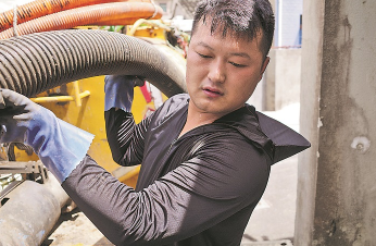 “高温天气干活,身上会特别臭。就算洗干净,味道也会残留一两天。”潘浩男告诉记者,化粪池虽经过沉淀分解,但气味实在不好闻,哪怕戴着口罩,味道也会往鼻子里钻。刚开始,他只能憋着气、硬着头皮干活,久而久之也就习惯了。