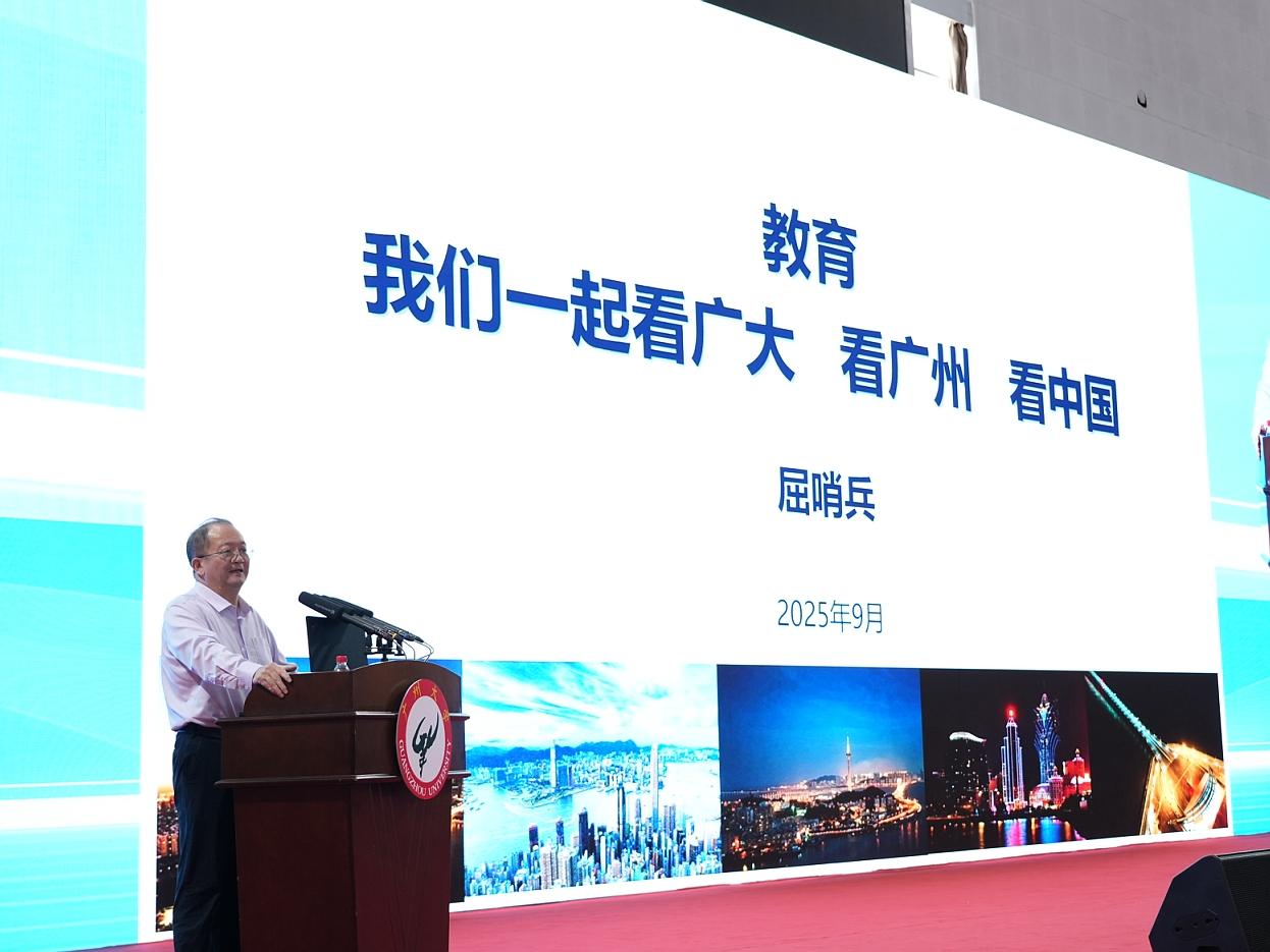 国家语委科研机构国家语言服务与粤港澳大湾区语言研究中心主任,国家语言文字推广基地(广州大学)主任,世界汉语教学学会常务理事,广州大学二级教授、博士生导师屈哨兵以《教育——我们一起看广大,看广州,看中国》为题,为2025级研究生开讲“名师第一课”。