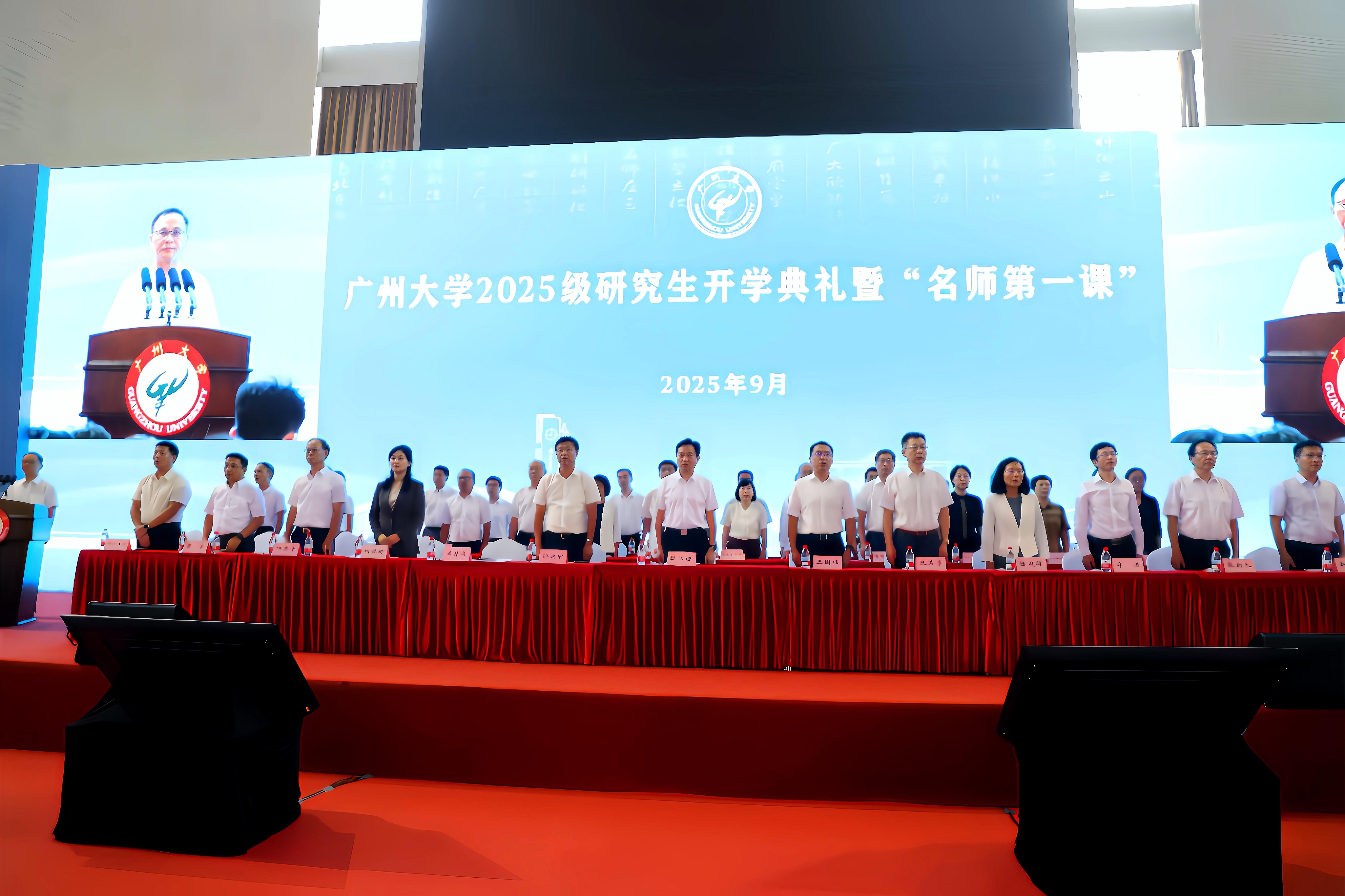 青春正朝阳,广州大学迎来又一批“研途新人”。9月9日,广州大学2025级研究生开学典礼暨“名师第一课”在大学城校区举行,2025级3500余名硕士生、博士生共同踏上在广大的璀璨“研”途。研究生开学典礼由副校长吴开俊主持。