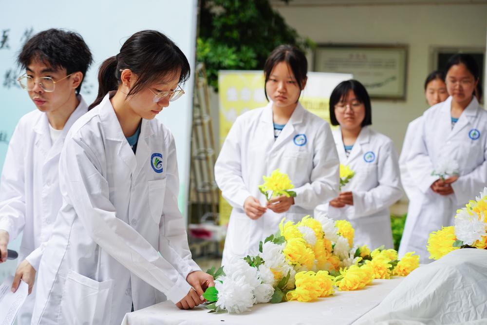 秋雨微凉,雏菊含情。活动现场肃穆庄严,师生集体默哀、鞠躬致敬、敬献鲜花,并在留言板上郑重书写感恩与追思。他们以最庄重的仪式,向“大体老师”表达最深切的敬意。