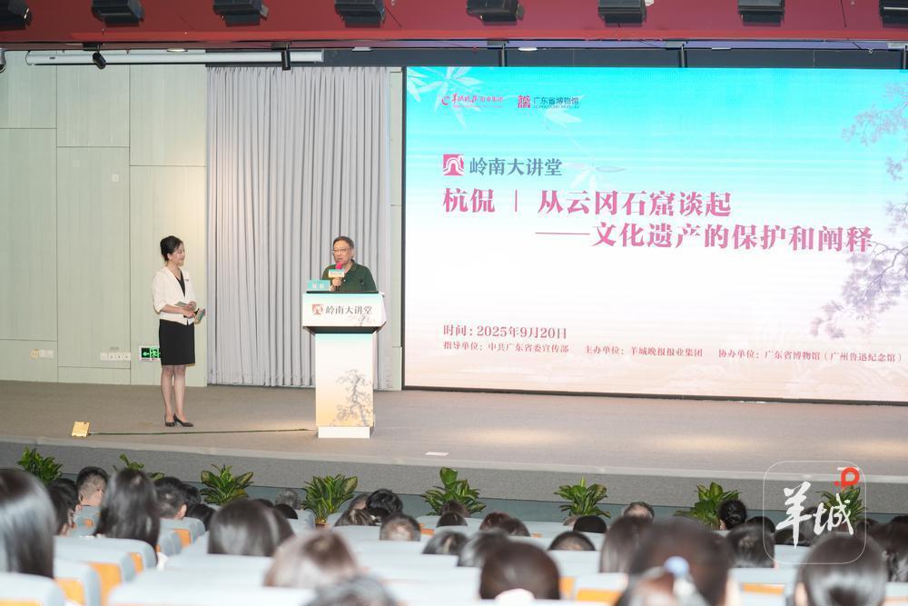 9月20日,由中共广东省委宣传部指导、羊城晚报报业集团主办的《岭南大讲堂》第七期讲座如期举行。山西云冈研究院院长、北京大学考古文博学院教授杭侃以“从云冈石窟谈起——文化遗产的保护与阐释”为主题,带领观众一同感受这座承载着千年历史的文化瑰宝。