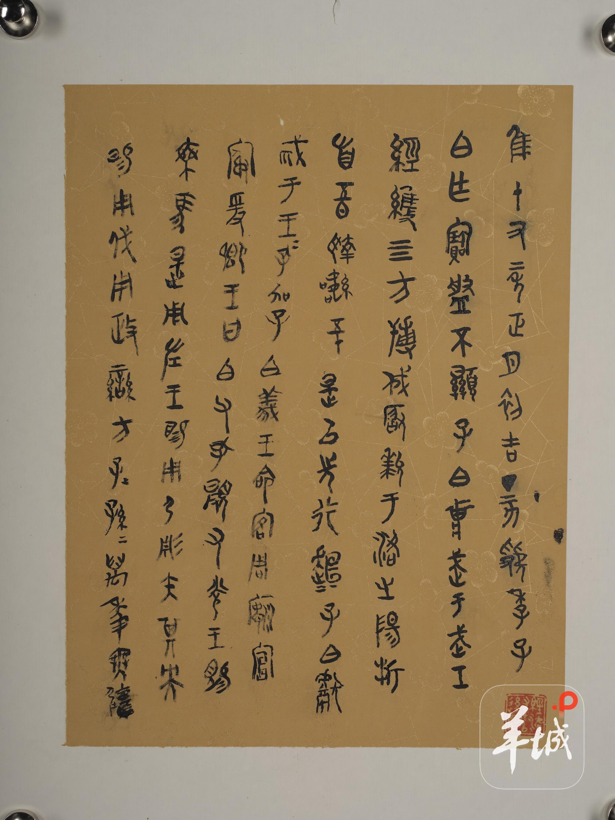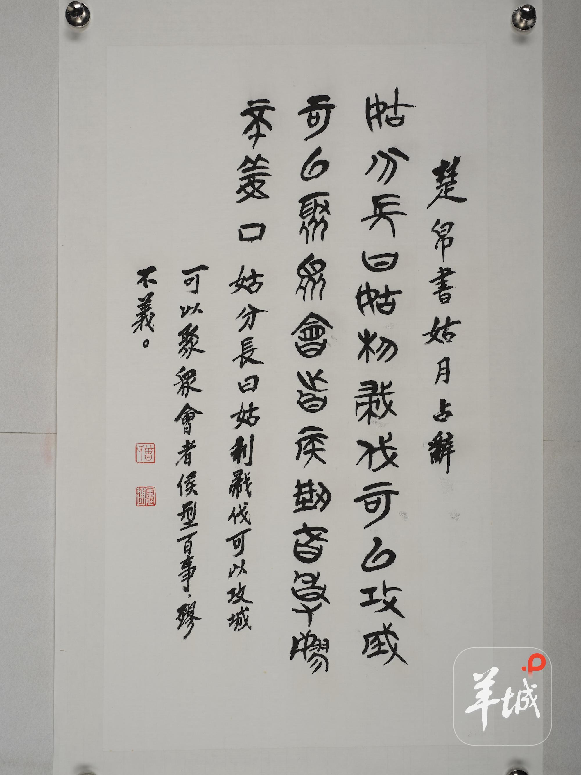 展览作品兼具学术文献与艺术创作的双重价值。曾宪通弟子、中山大学人文学部副主任陈伟武教授介绍,在学术脉络方面,《关于如何“考文释字”》阐释古文字考释方法;《楚帛书的影片》记录20世纪70年代海外珍贵文献的流转历程;《〈说繇〉续貂》补充战国文字演变研究;《批注本〈篆隶万象名义〉跋》则考证学者张为纲与李新魁的学术渊源。在历史记忆层面,76号作品将马来西亚槟城称为“第二故乡”,串联起家族侨史;《大跃进 战东莞》记载1958年中山大学师生参与东莞公社化运动的事迹,是中山大学校史的宝贵资料。
