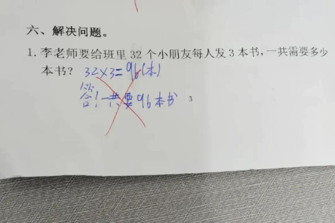 有老师解释,2025年秋季学期开始,老师要求学生清晰掌握乘法算理,明确列式写法为每份数×份数=总数,即3个2相加的乘法列式为2×3,2个3相加的乘法列式为3×2,用这种方式帮助学生建立“量×份数”的认知结构,了解倍数关系。