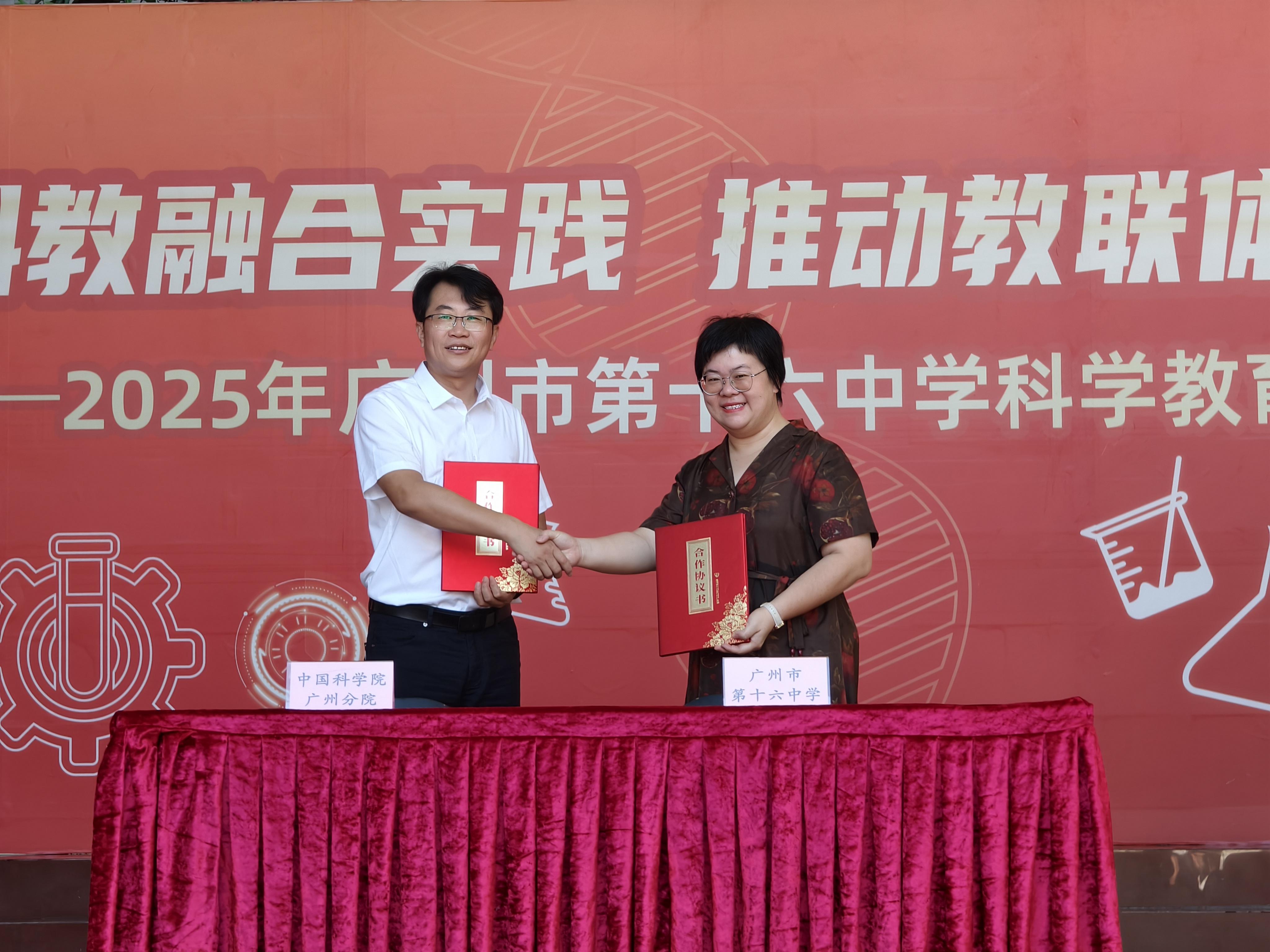 现场会上,中国科学院广州分院与广州十六中签署《加快推进新时代科学教育发展合作协议》。双方将在科学课程开发、科研项目指导、师生研学实践等方面开展深度合作,共同建设“青少年科技创新实验室”,推动“科学家进校园”等长效机制的建立。未来,中国科学院广州分院、十六中及农林街道将充分发挥各自优势,推动资源整合,为青少年提供更优质的科学教育平台。