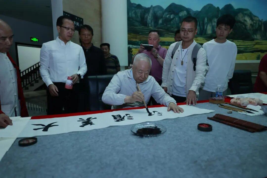 同日下午,陈初生与谢光辉、卢家明、高旭华等文化名家还前往湄江风景区开展文旅宣推活动,先后参观塞海湖、三道崖门、罩门庵、揽月古道、大江口水库等地,以脚步丈量山水、用笔墨记录风情,深入挖掘湄江的自然风貌与人文底蕴。艺术家们一致认为,湄江集自然奇观与人文积淀于一体,是艺术创作不可多得的宝地,未来将通过更多艺术作品传播湄江之美;活动中,他们更在灵感迸发之际即兴挥毫、泼墨写意,创作多幅书法作品,既展现传统文化魅力,也表达对湄江自然与人文景观的深情礼赞。
