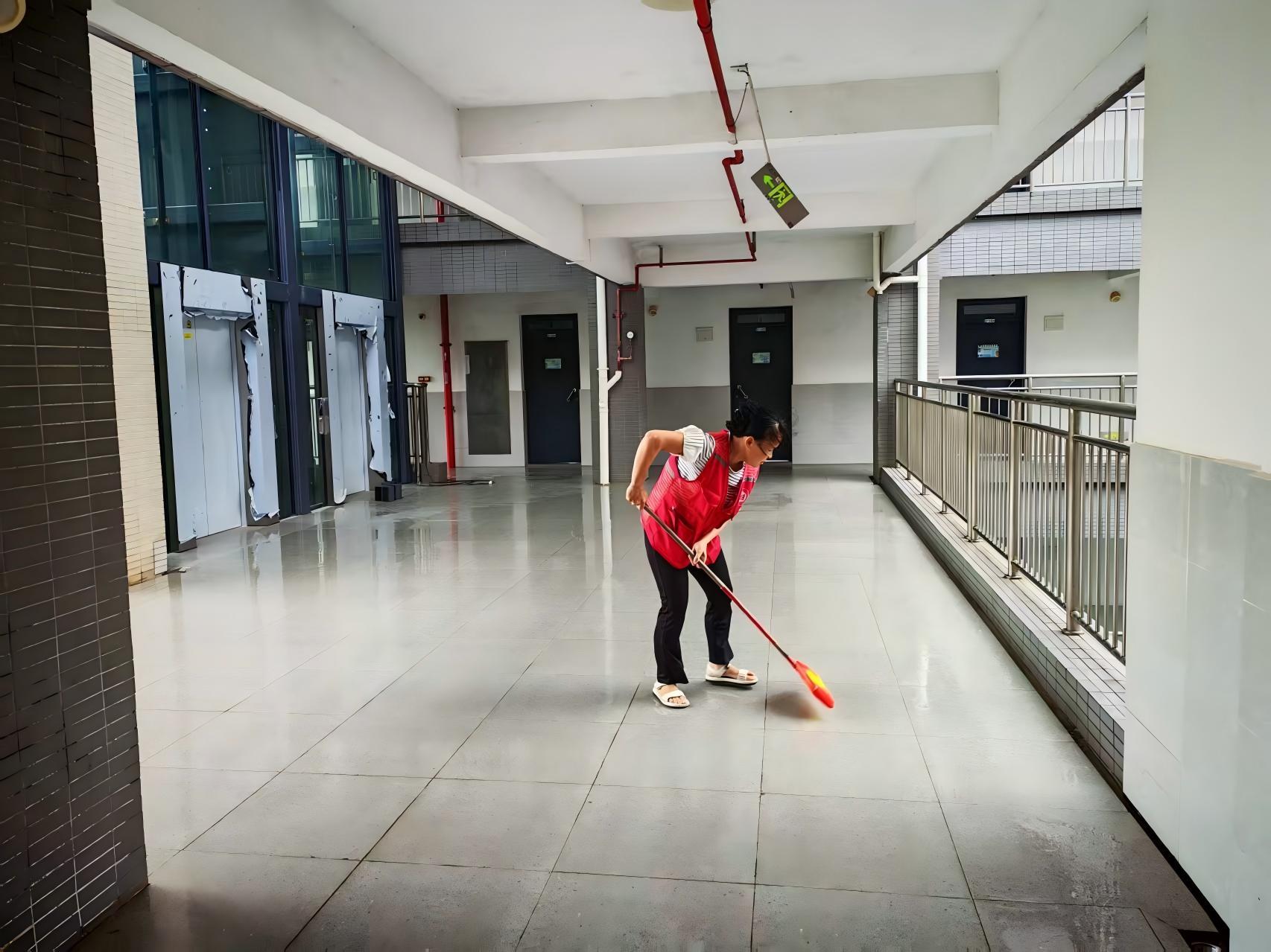 在广州应用科技学院的学生社区里,一群身影正逆向而行。9月24日,台风“桦加沙”登陆广东当天,生活指导老师们冒雨穿梭在每栋学生公寓的楼道之间,仔细检查每一扇门窗,清理可能存在的隐患。他们沿着宿舍外围反复巡查,紧盯易倒伏的树木与易松动的设施,用责任守住安全底线。风雨中,那被雨水浸透的衣背和专注的眼神,成了校园里最动人的风景。
