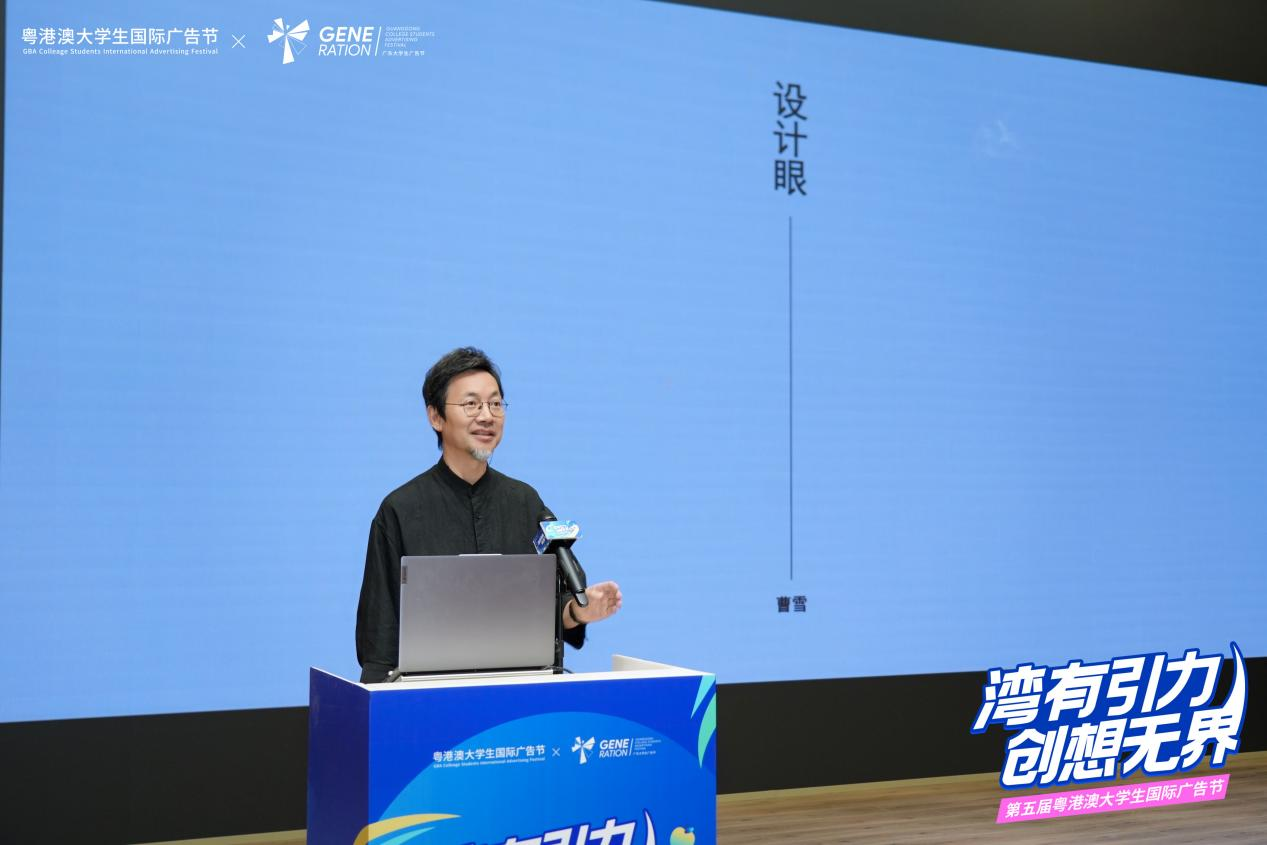 发布仪式后,广州美术学院教授曹雪做了主题分享。作为资深设计大咖,曹雪以“如何用‘设计眼’发现创意闪光点”为核心,结合自身参与城市形象设计、品牌视觉打造的丰富经验,从多维度为在场学生拆解创意设计的关键逻辑。他认为“设计眼的核心是‘看见不同’”,以广州塔等logo设计为例,讲述如何提炼出兼具现代感与地域辨识度的视觉符号。他强调中华优秀传统文化与湾区地域特色的创意转化,鼓励学生打造有温度、有记忆点的作品。